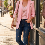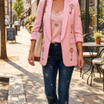 89,95€Blazer rosa con manga larga fruncida.