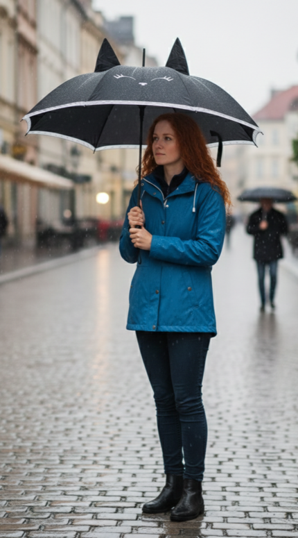 Paraguas bastón de lunares.