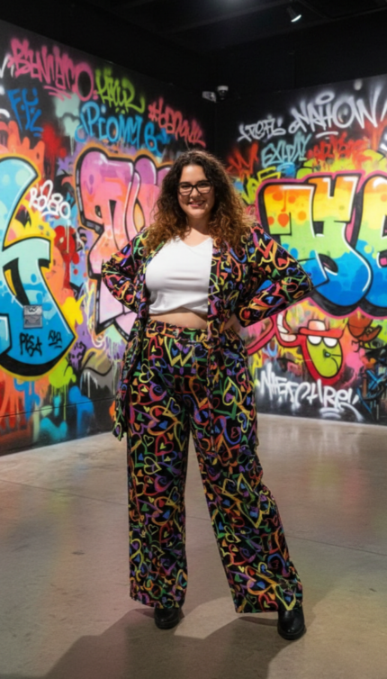 Conjunto de pantalón y camisa overside en hilo calado beige.