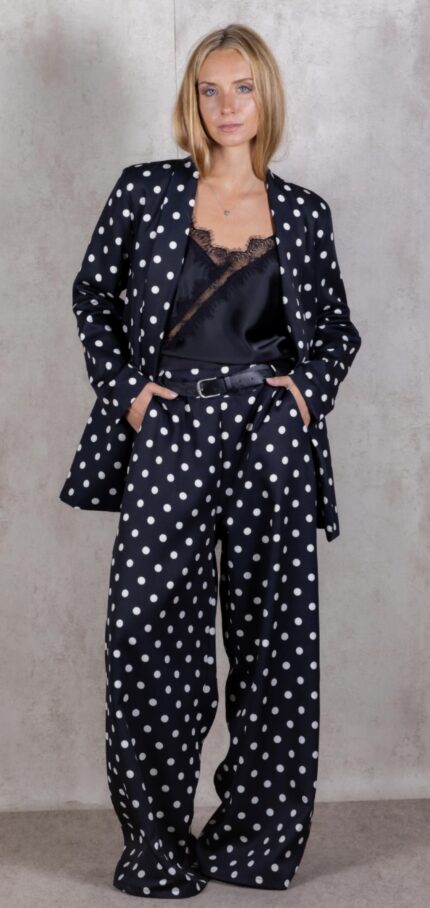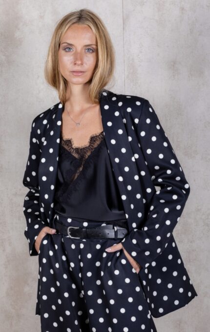 Blazer de lunares blanco y negro.