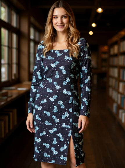 Vestido midi de punto licra estampado.