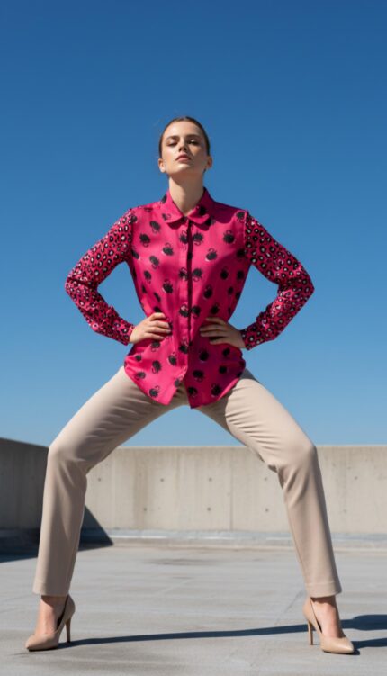Blusa fucsia con puños y bajo en nido de abeja.