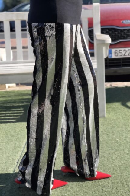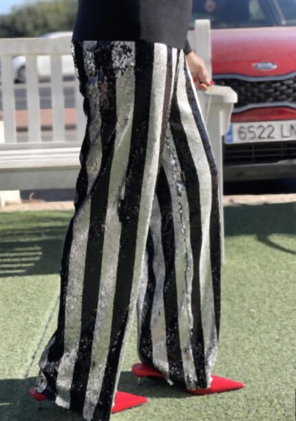 Pantalón a rayas de lentejuelas.