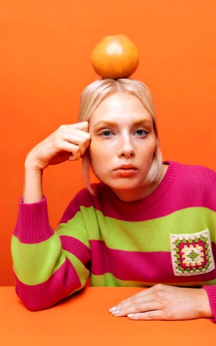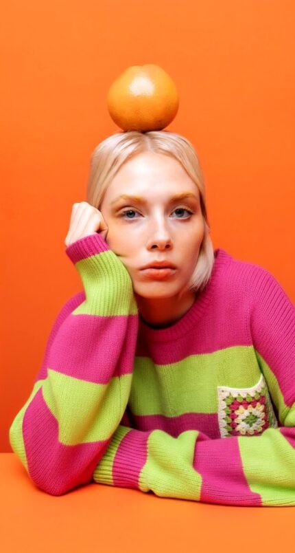 Jersey de punto a rayas fucsia y verde.