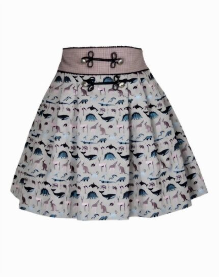 Falda en tejido de punto grueso decorada con pelo rosa en el bajo.
