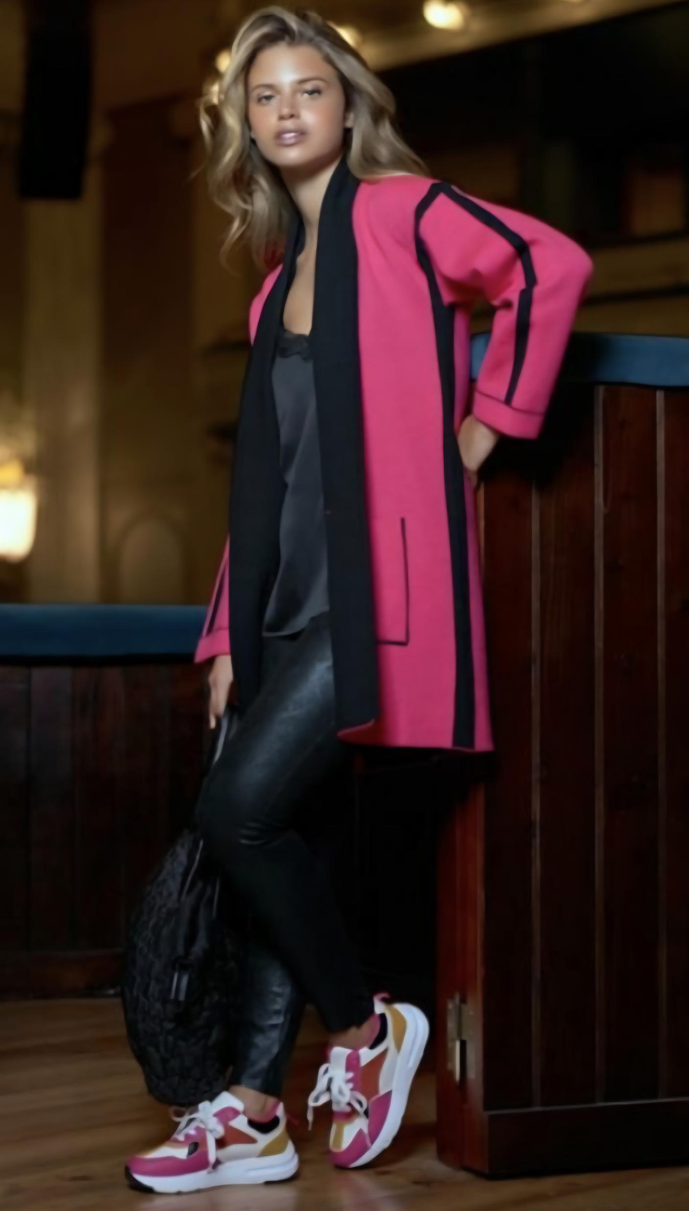 Combinación de dos colores; Fucsia y negro.