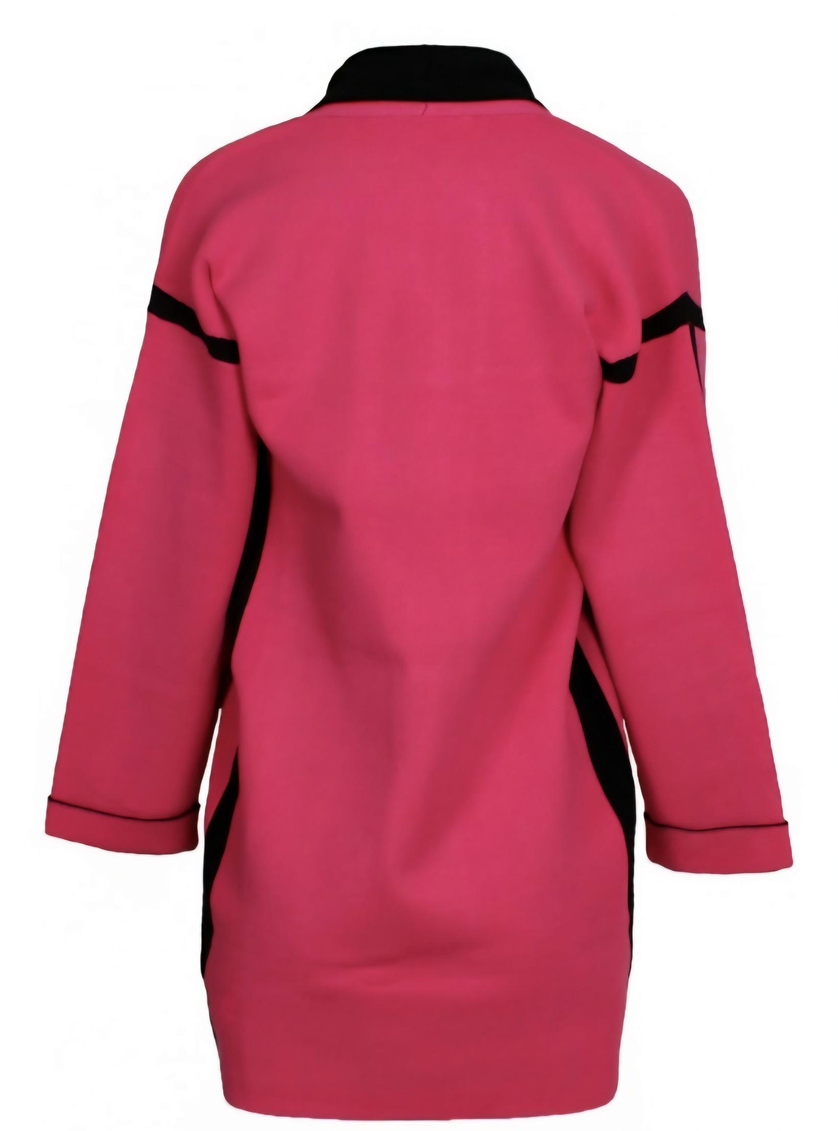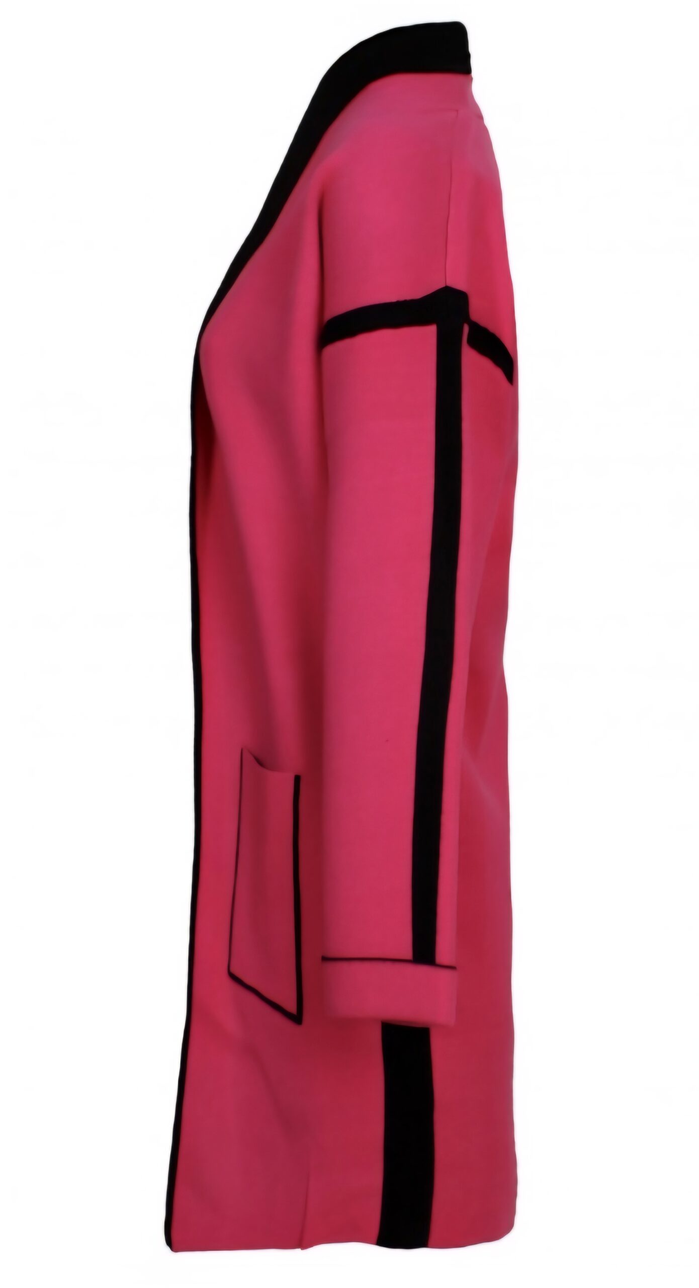 Cuello solapa tipo smoking y manga larga.