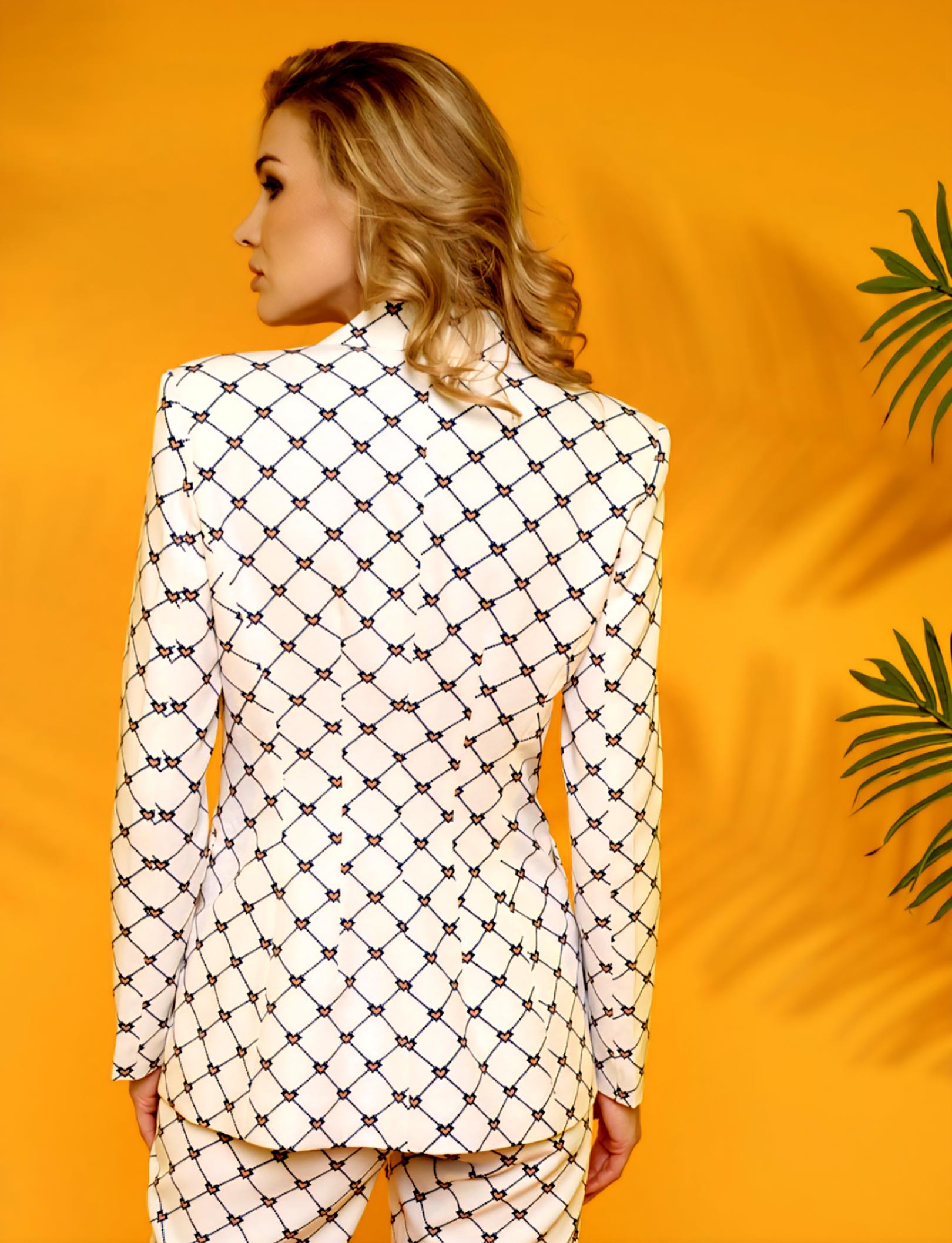 Estampación de cuadricula a puntitos marino y corazones en color maquillaje sobre fondo blanco.