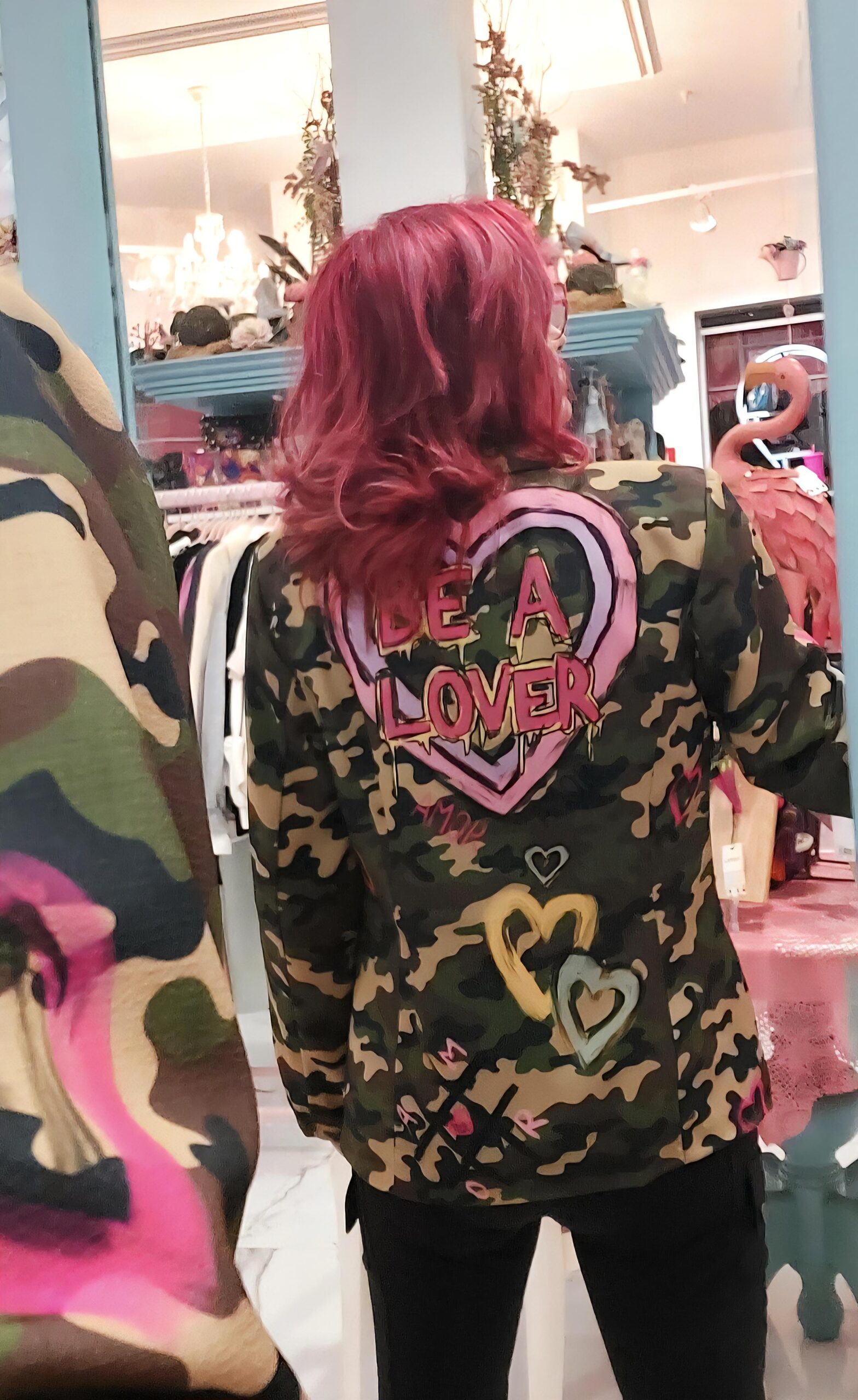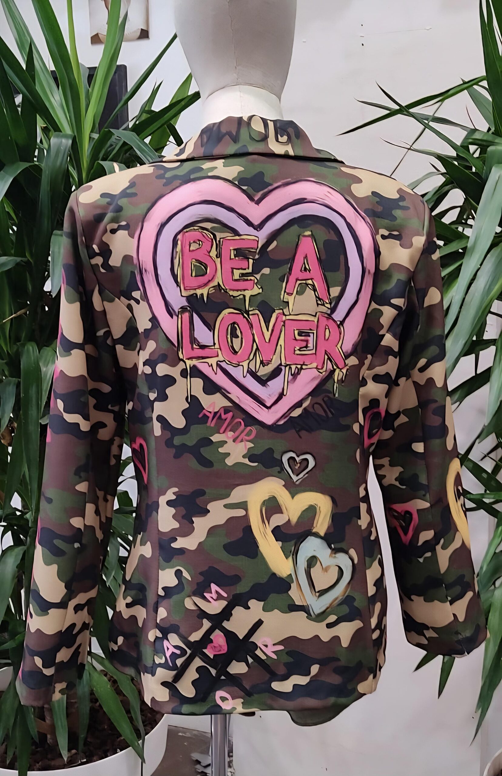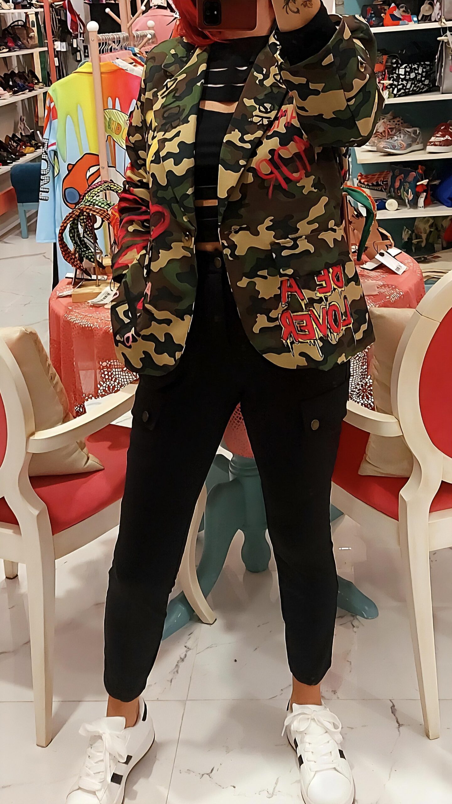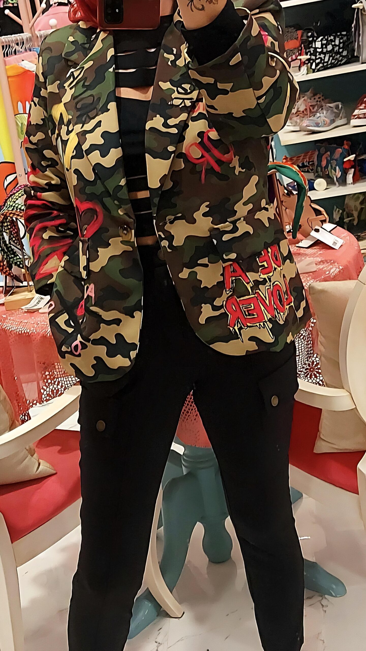 Estampación militar con estampación de corazones y letras con colores fluor.