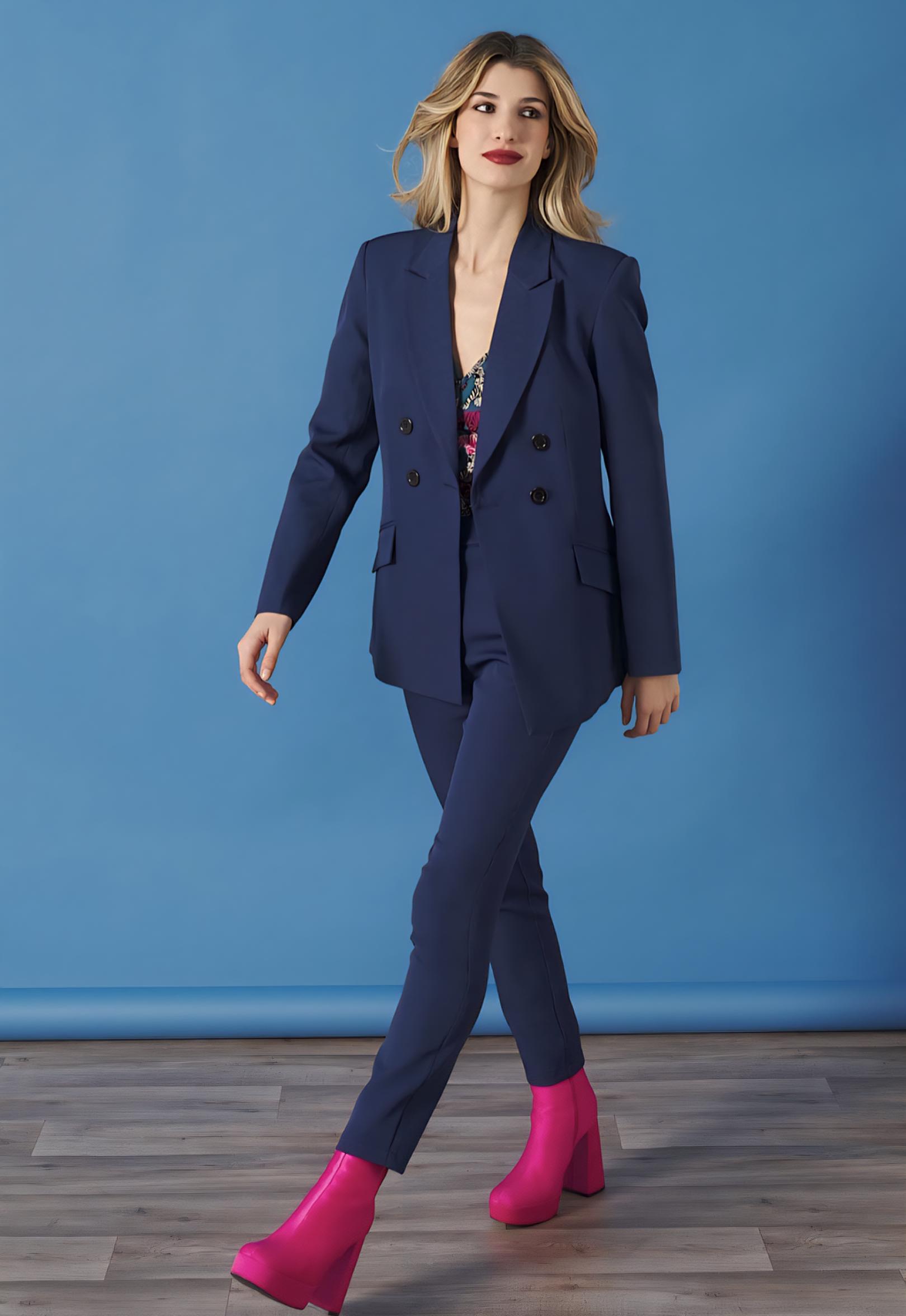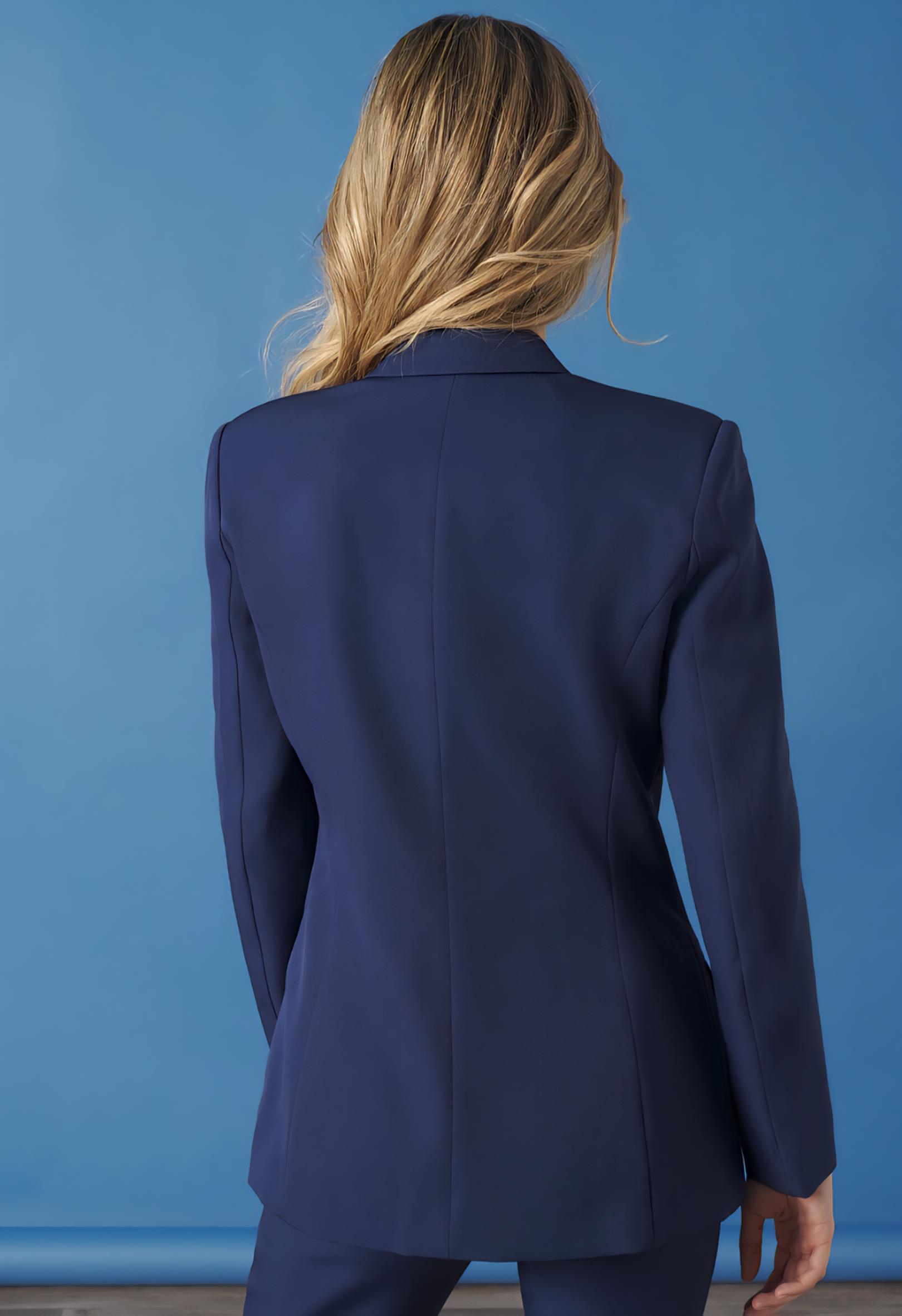 Chaqueta tipo blazer con cuello solapa y cierre con botones frontales.