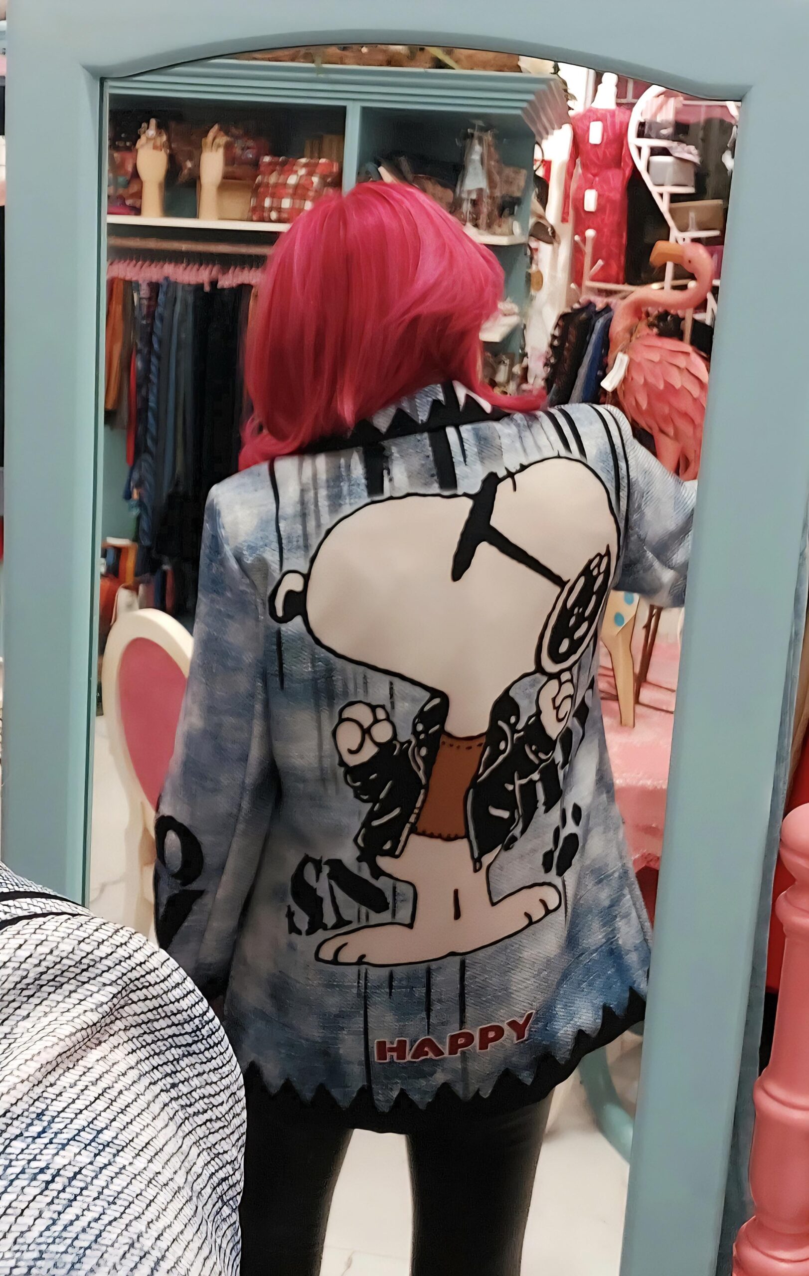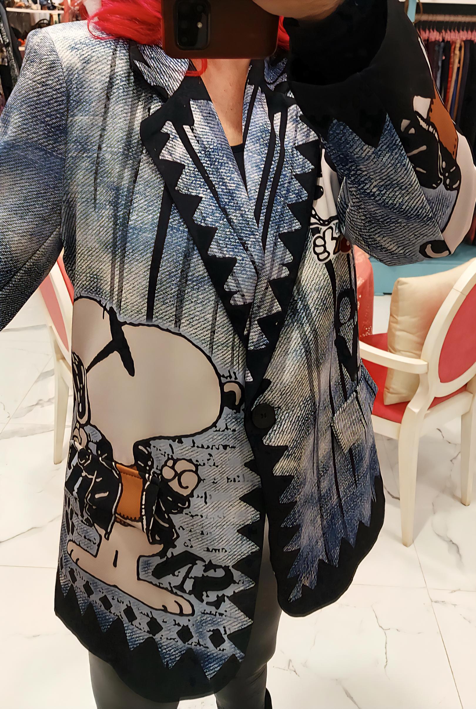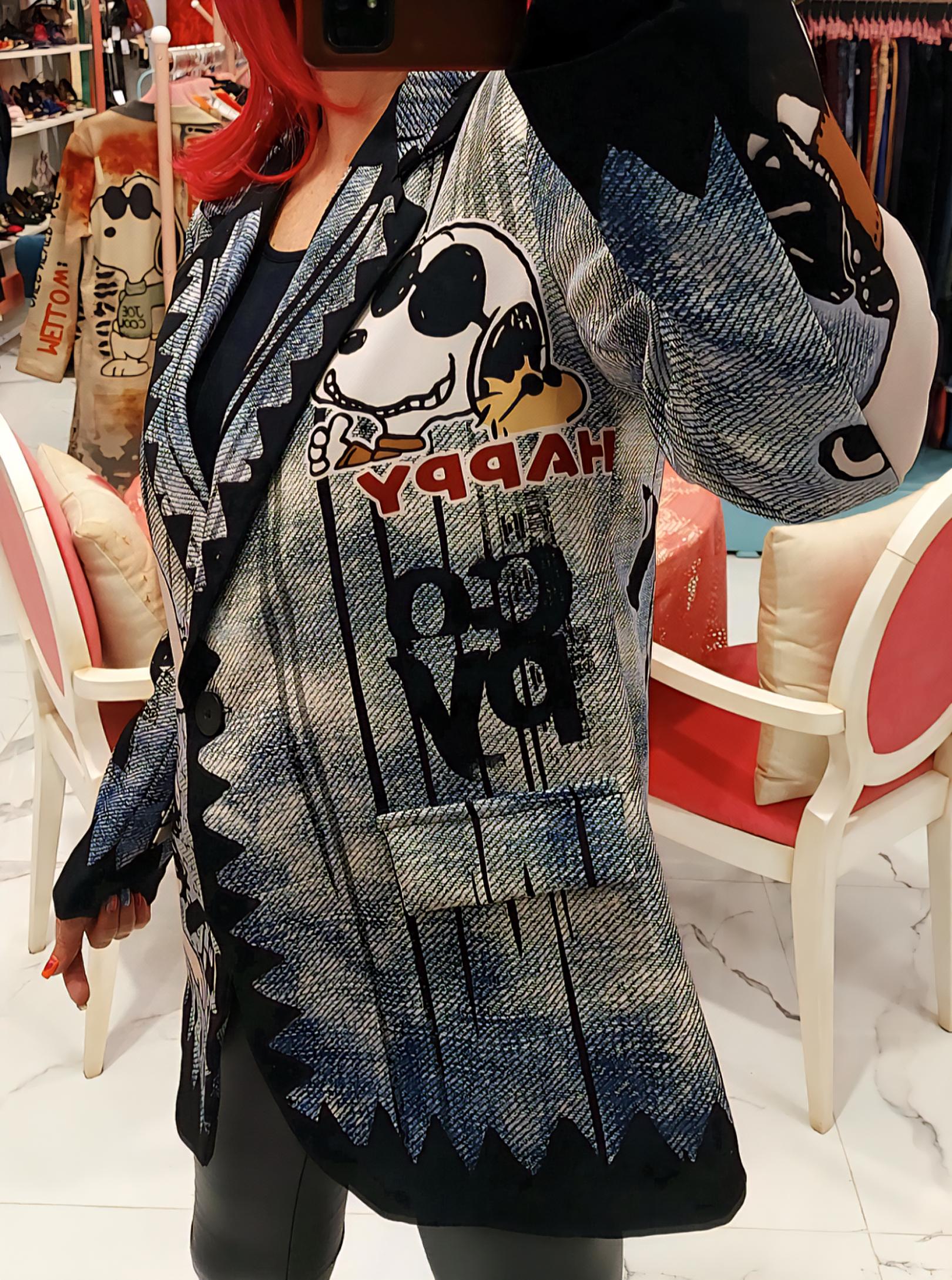 Estampación Snoopy sobre fondo imitación jeans.