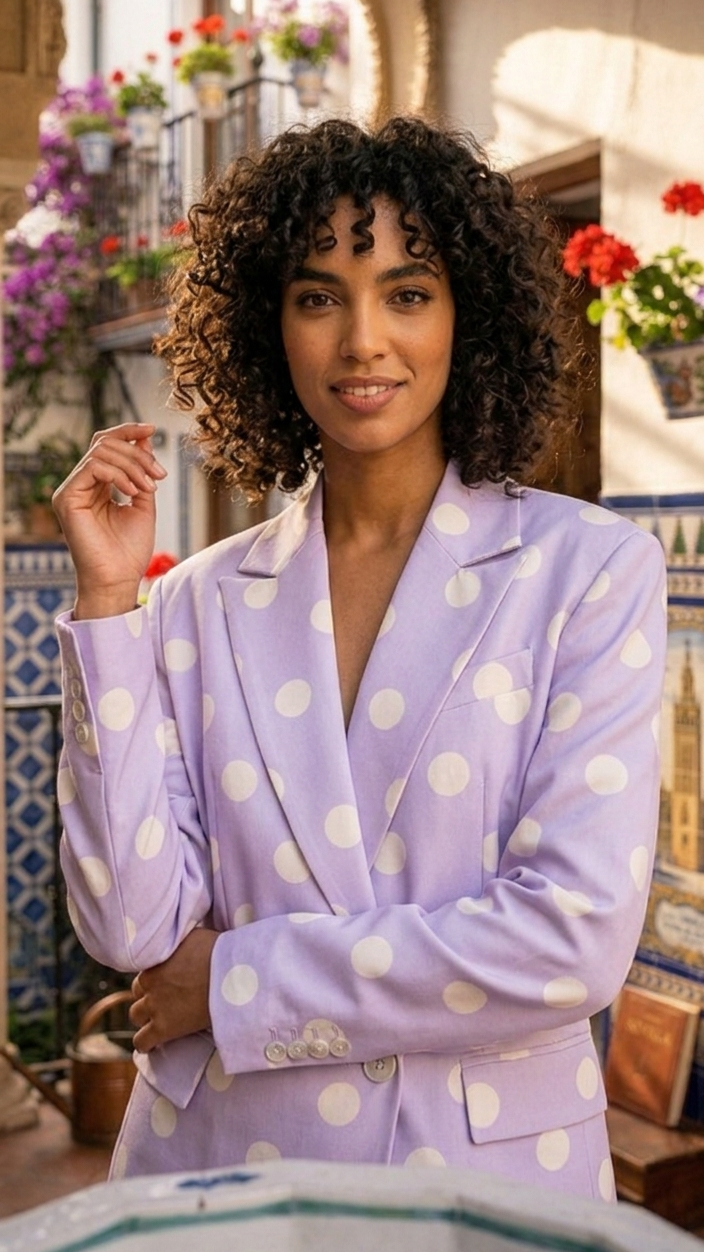 Americana de manga larga, cuello solapas y abotonadura delantera delantera cruzada con dos botones.