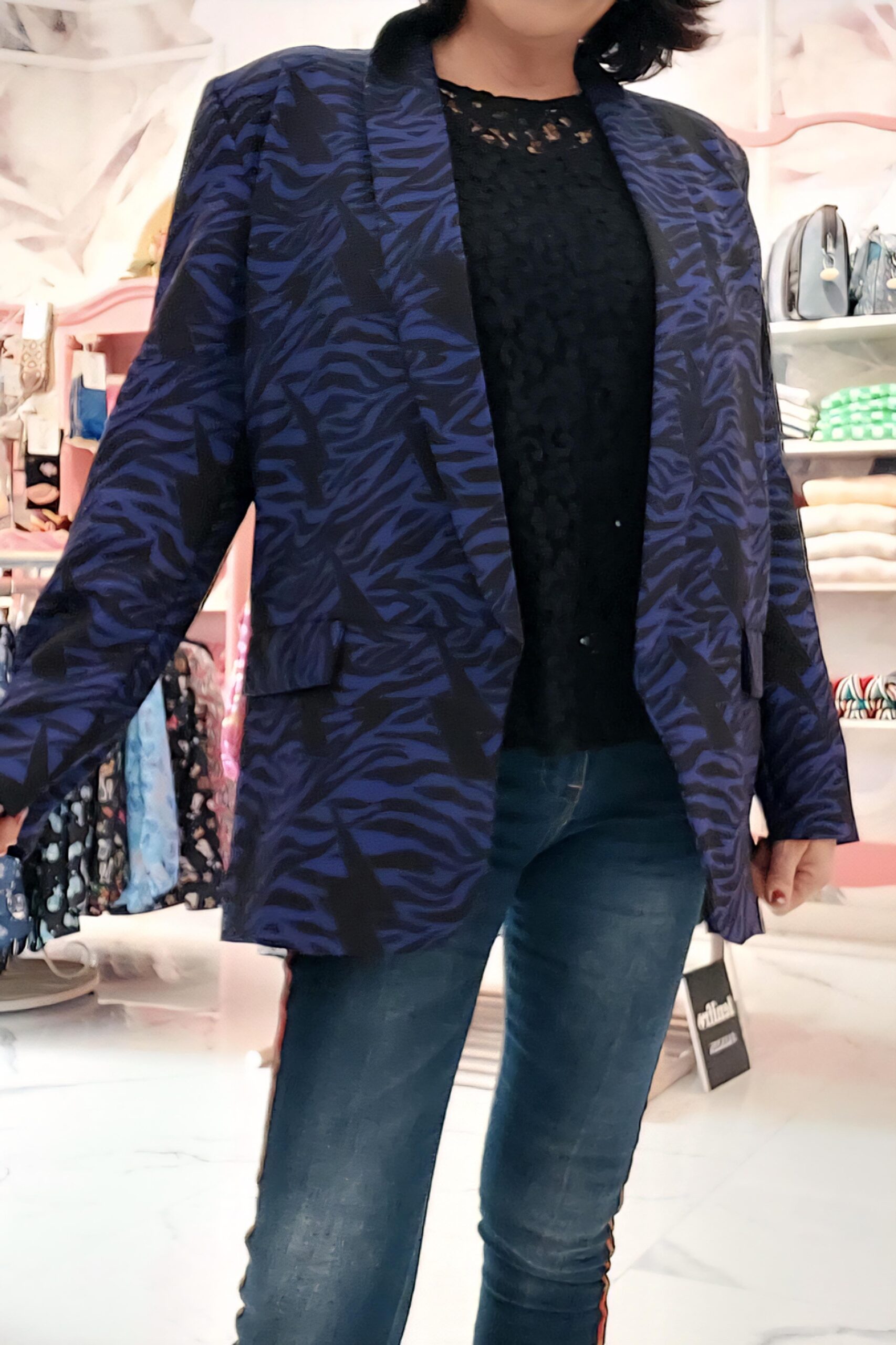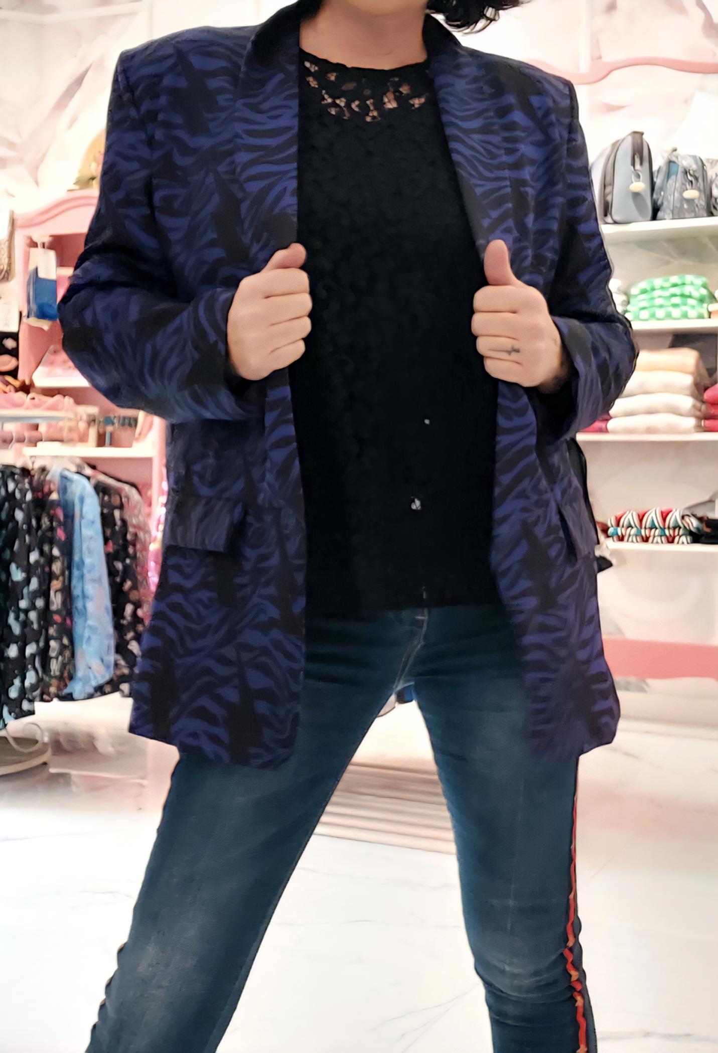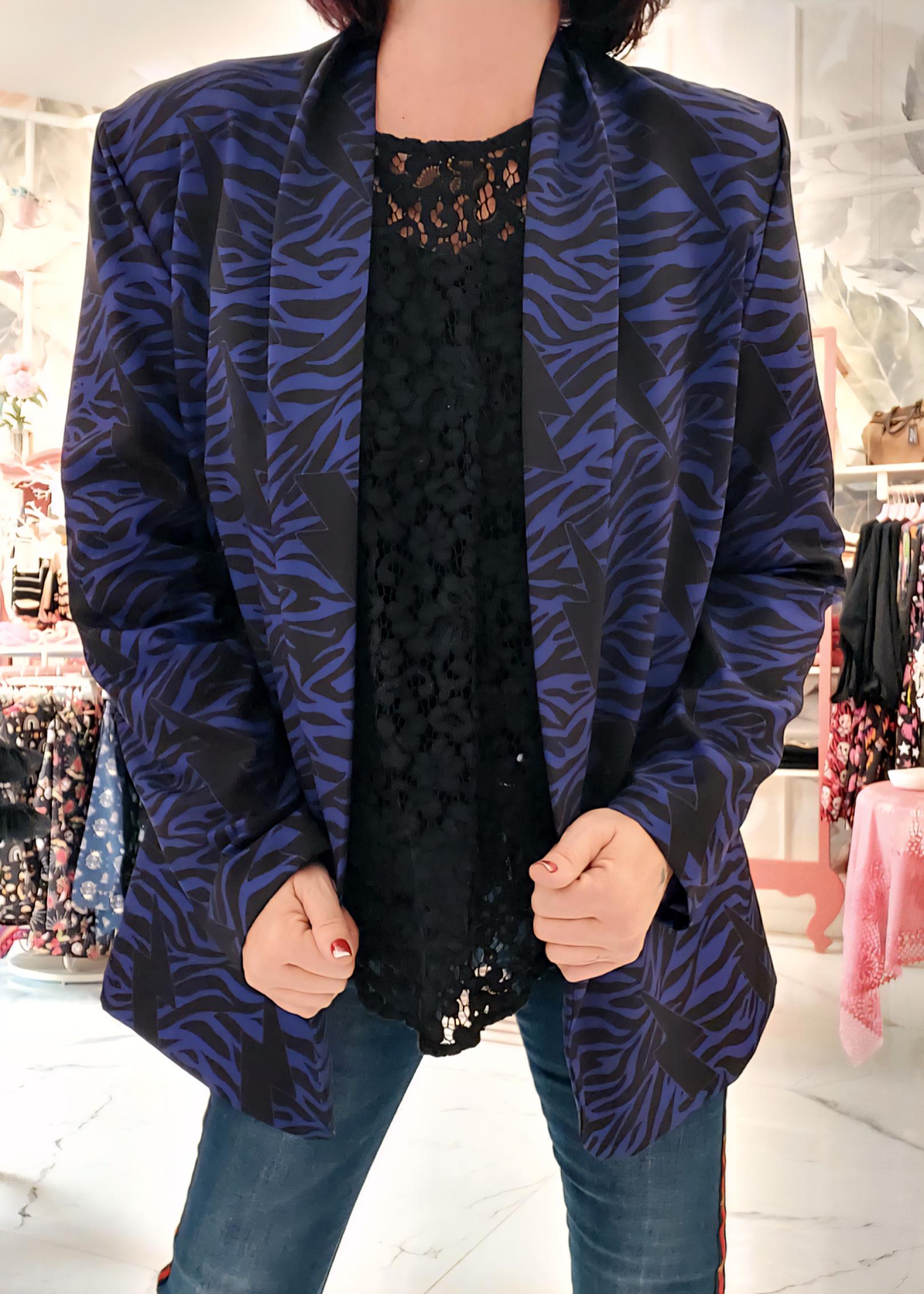 Estampación rayos y cebreado en color negro sobre fondo morado.