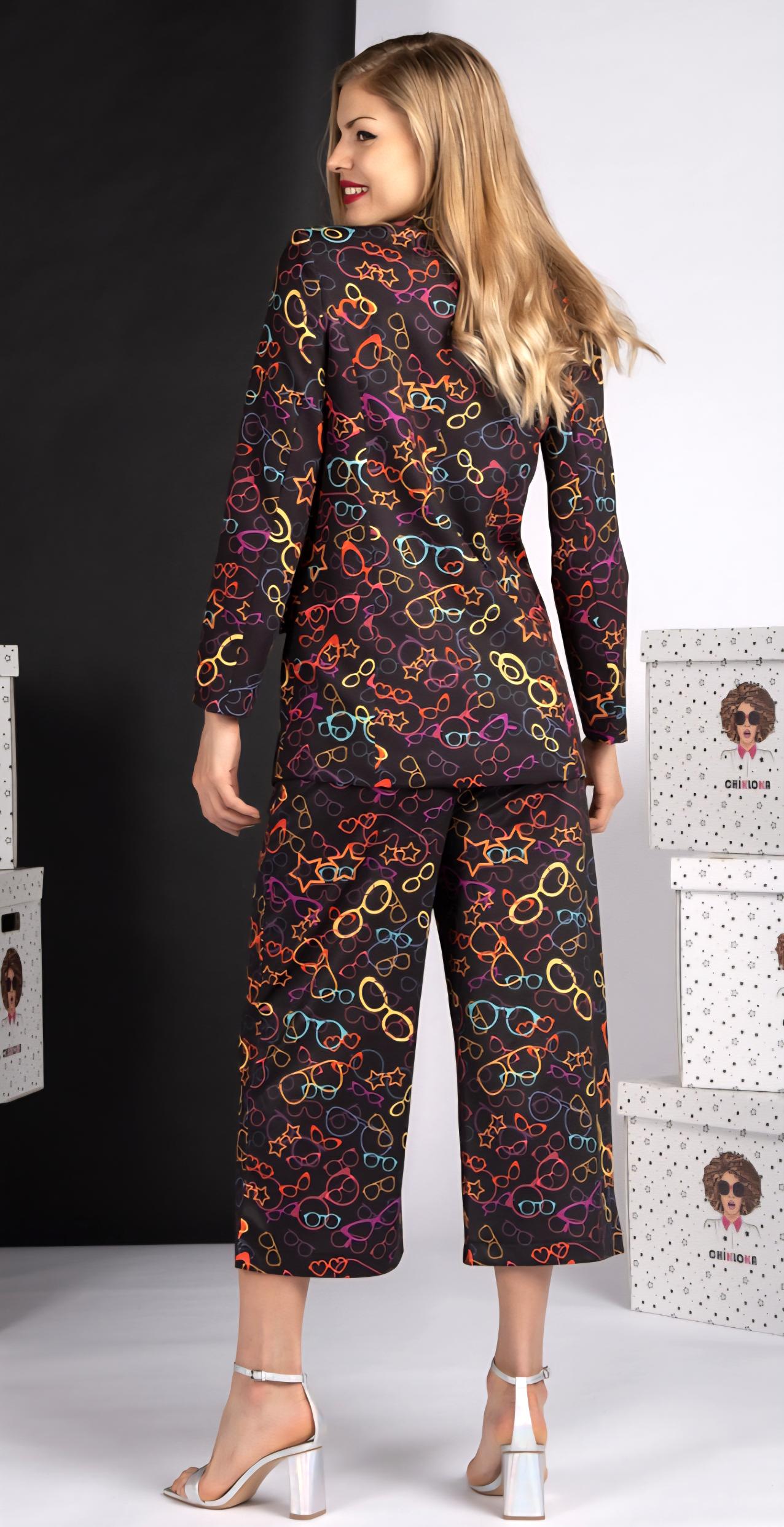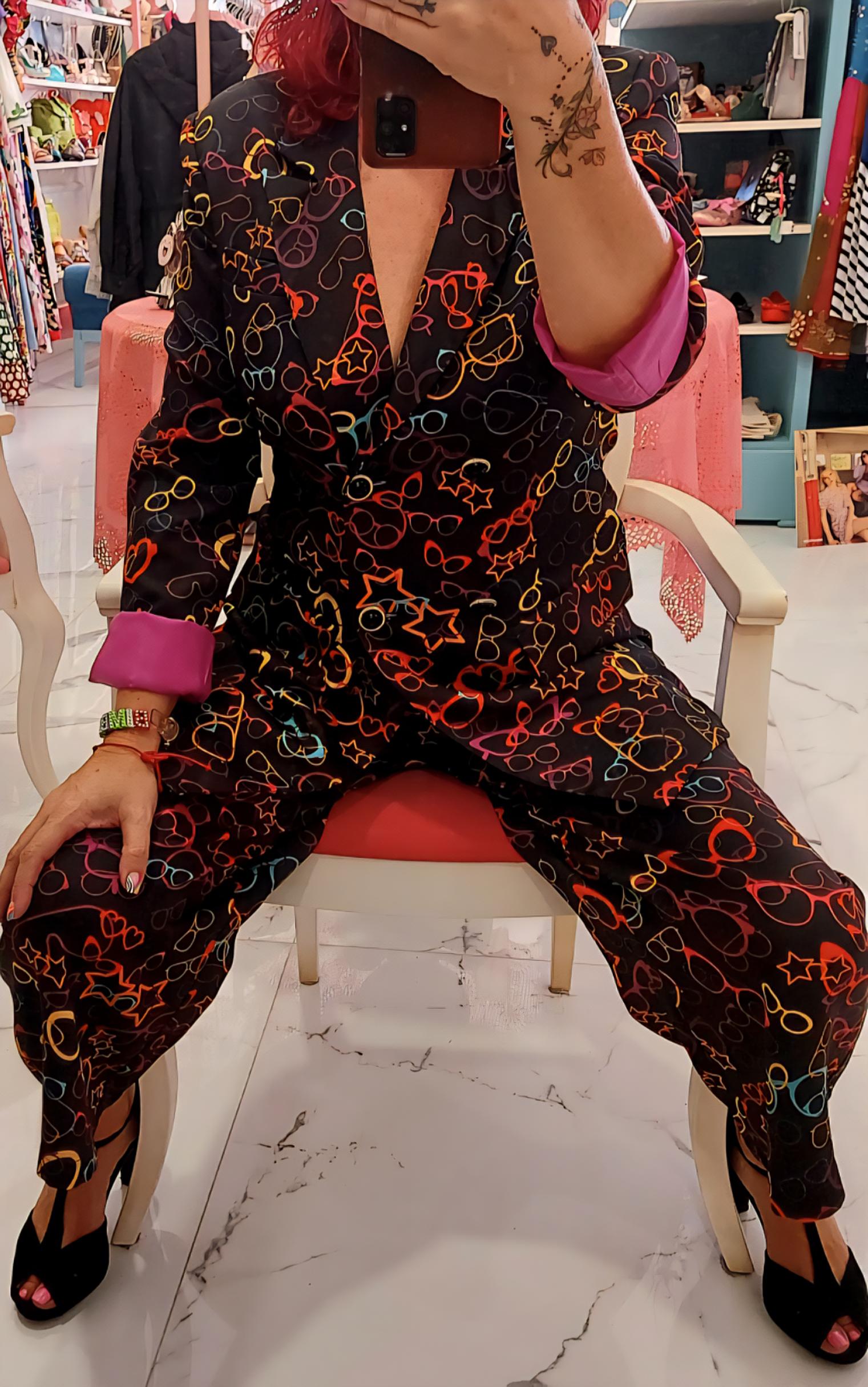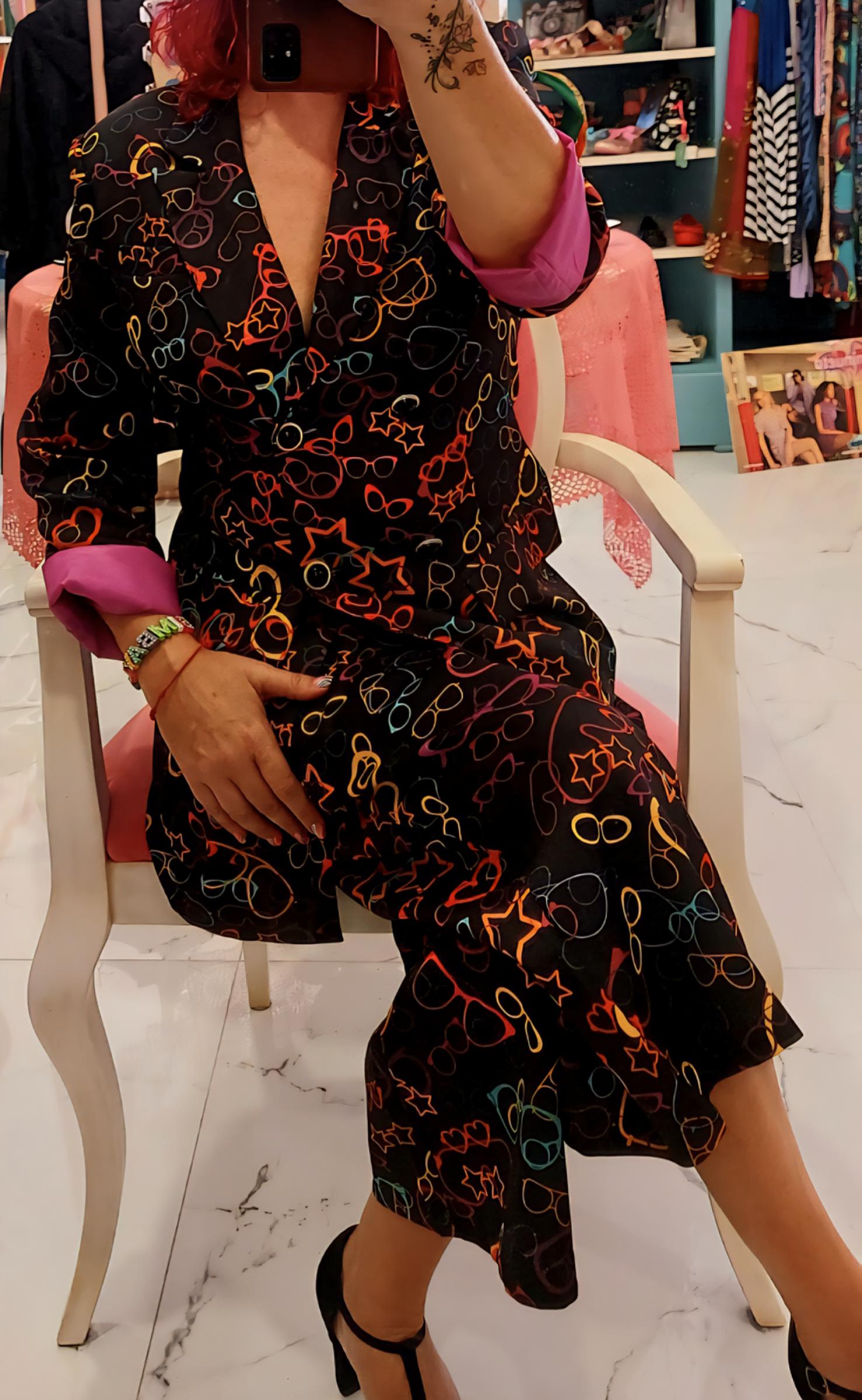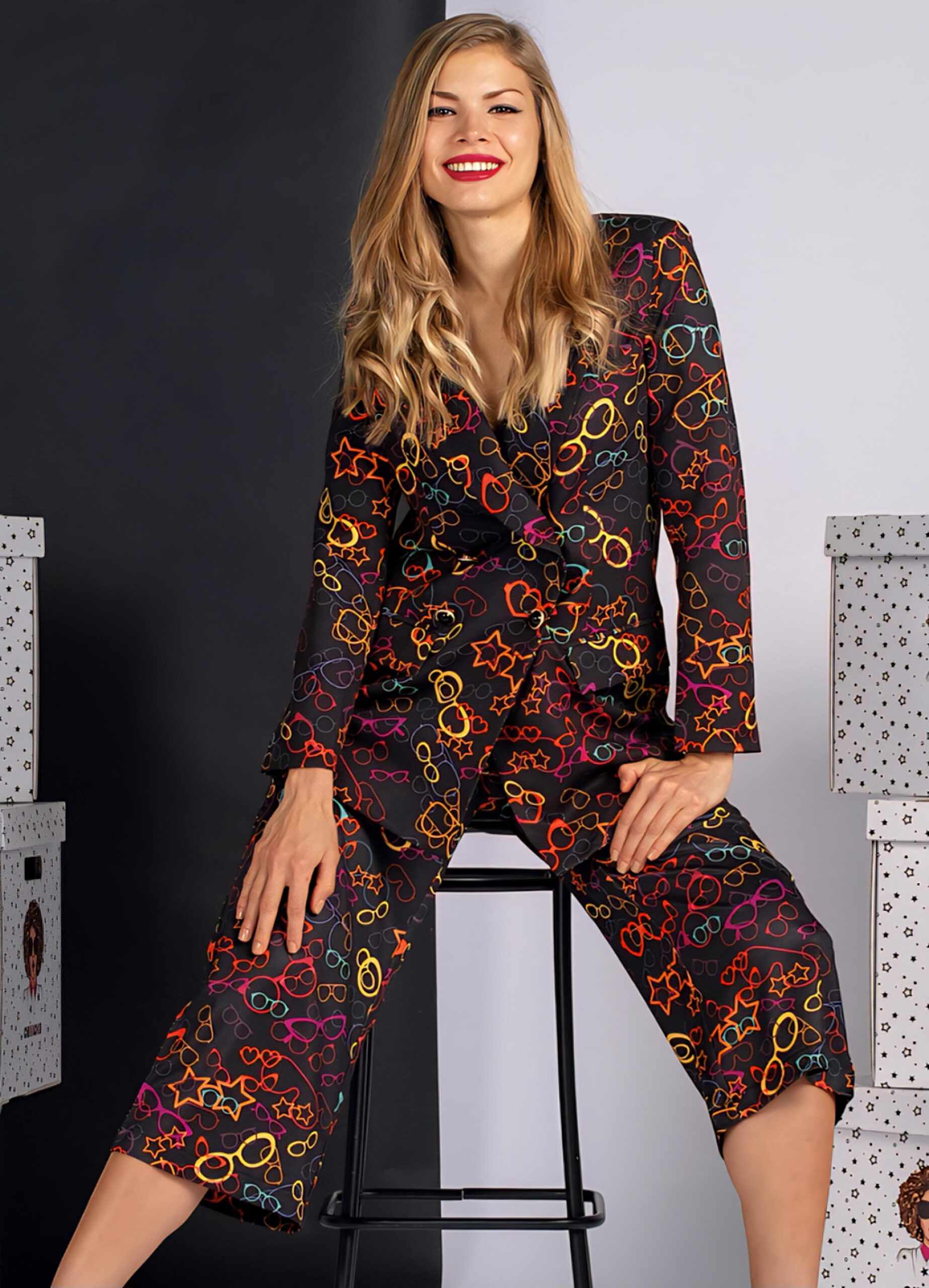 Estampación gafas multicolor sobre fondo negro.
