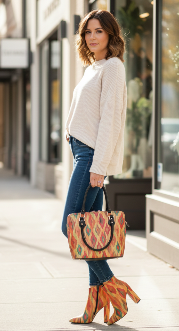 Bolso de piel con estampación a rombos multicolor.
