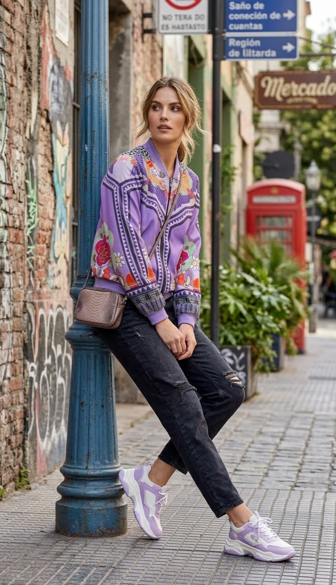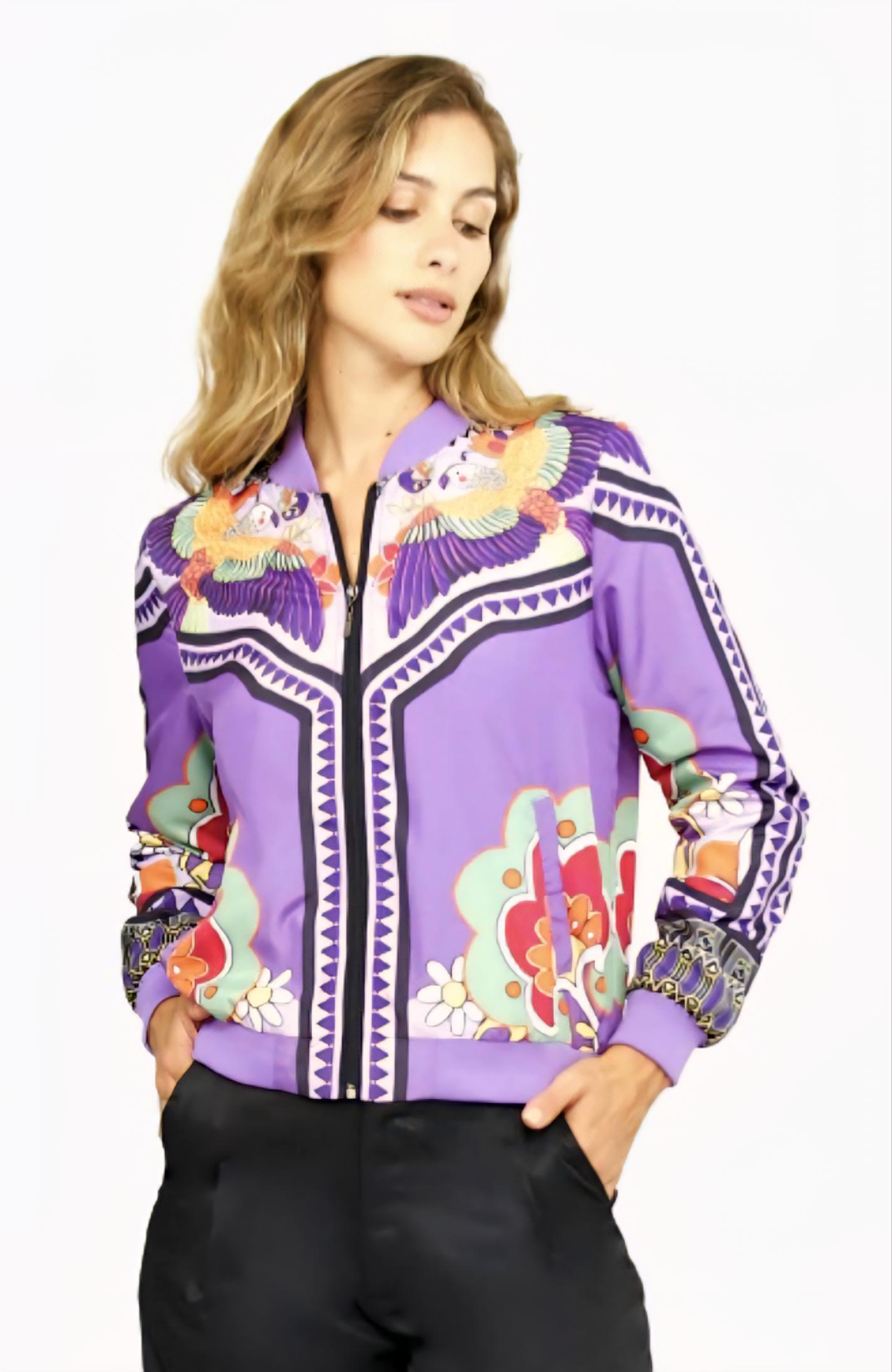 Chaqueta bomber con cremallera delantera.