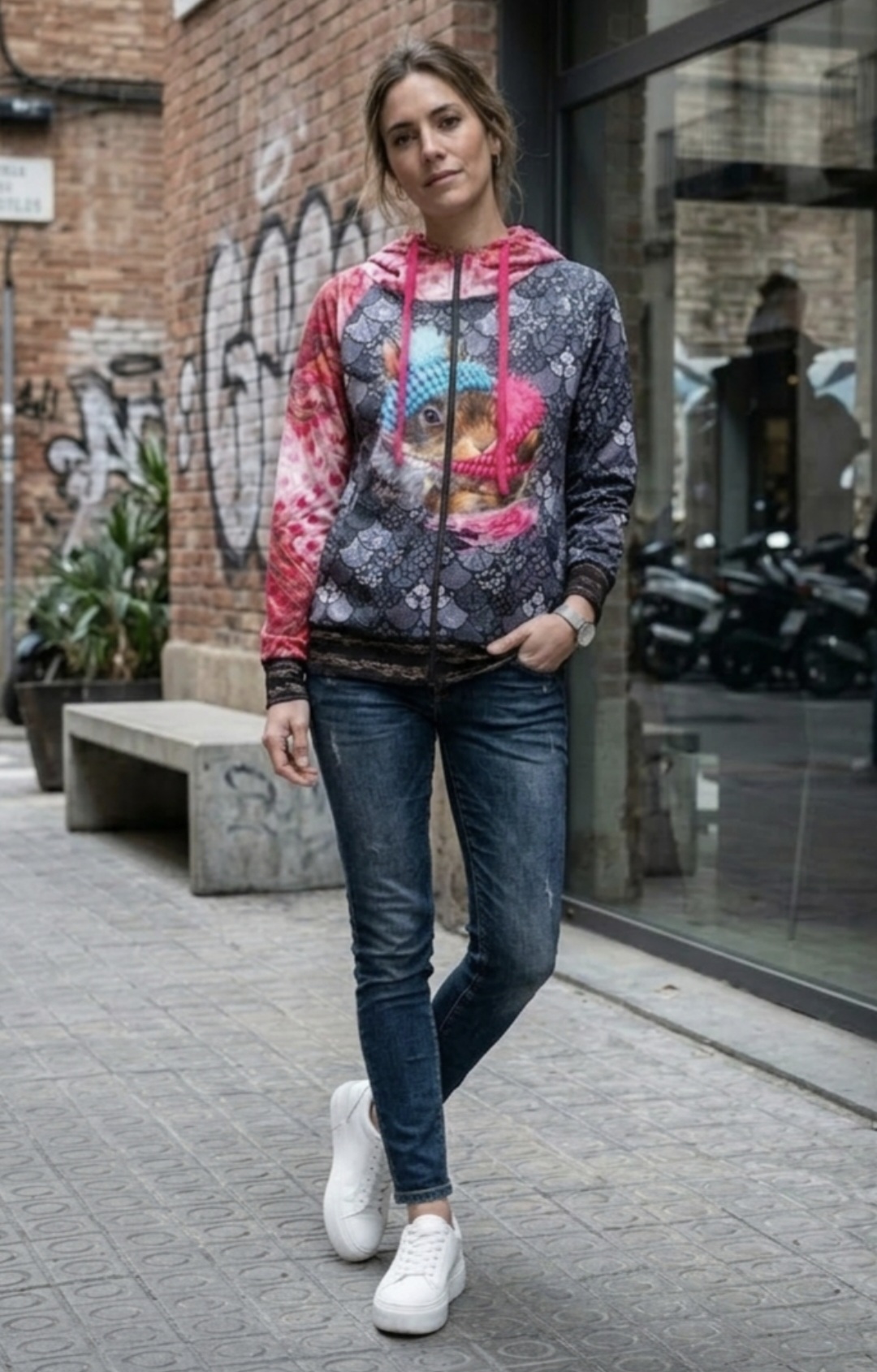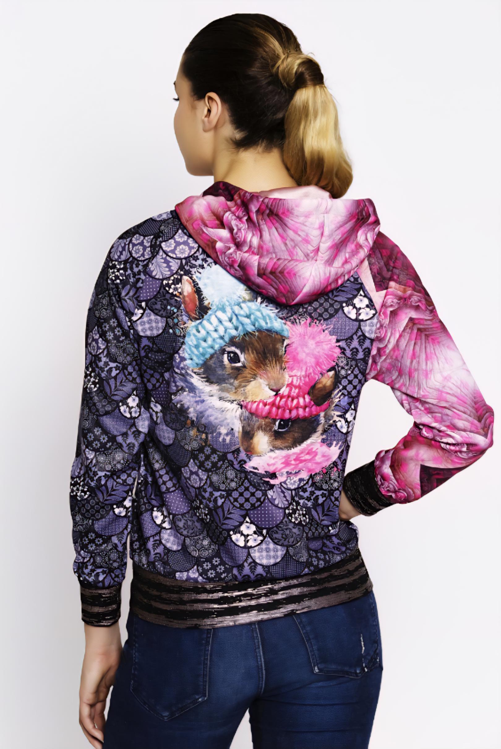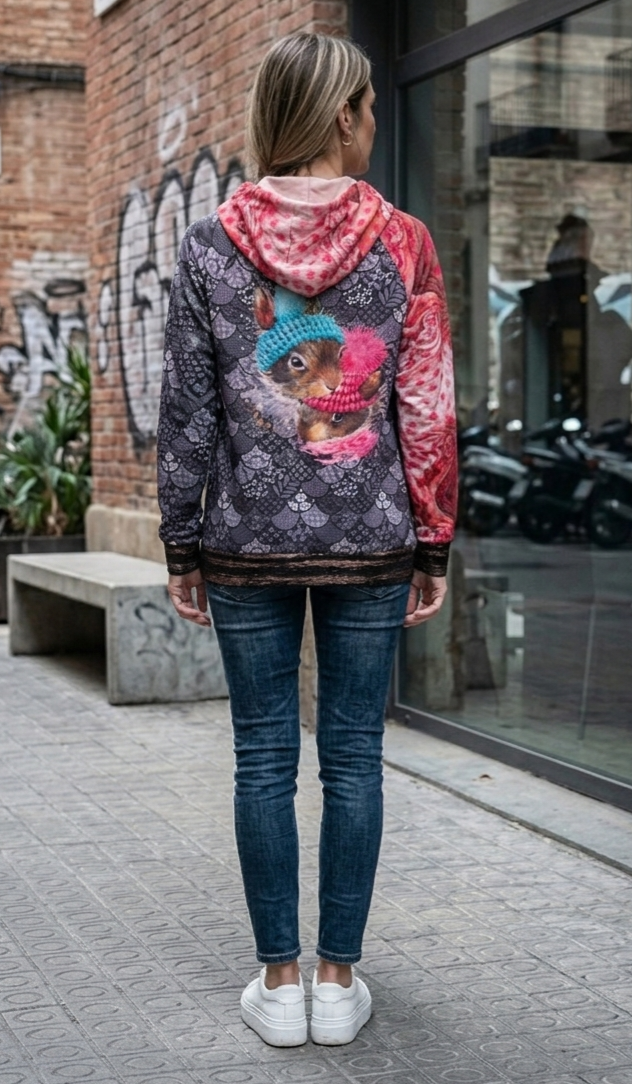 Chaqueta tipo bomber con capucha y bolsillos delanteros.