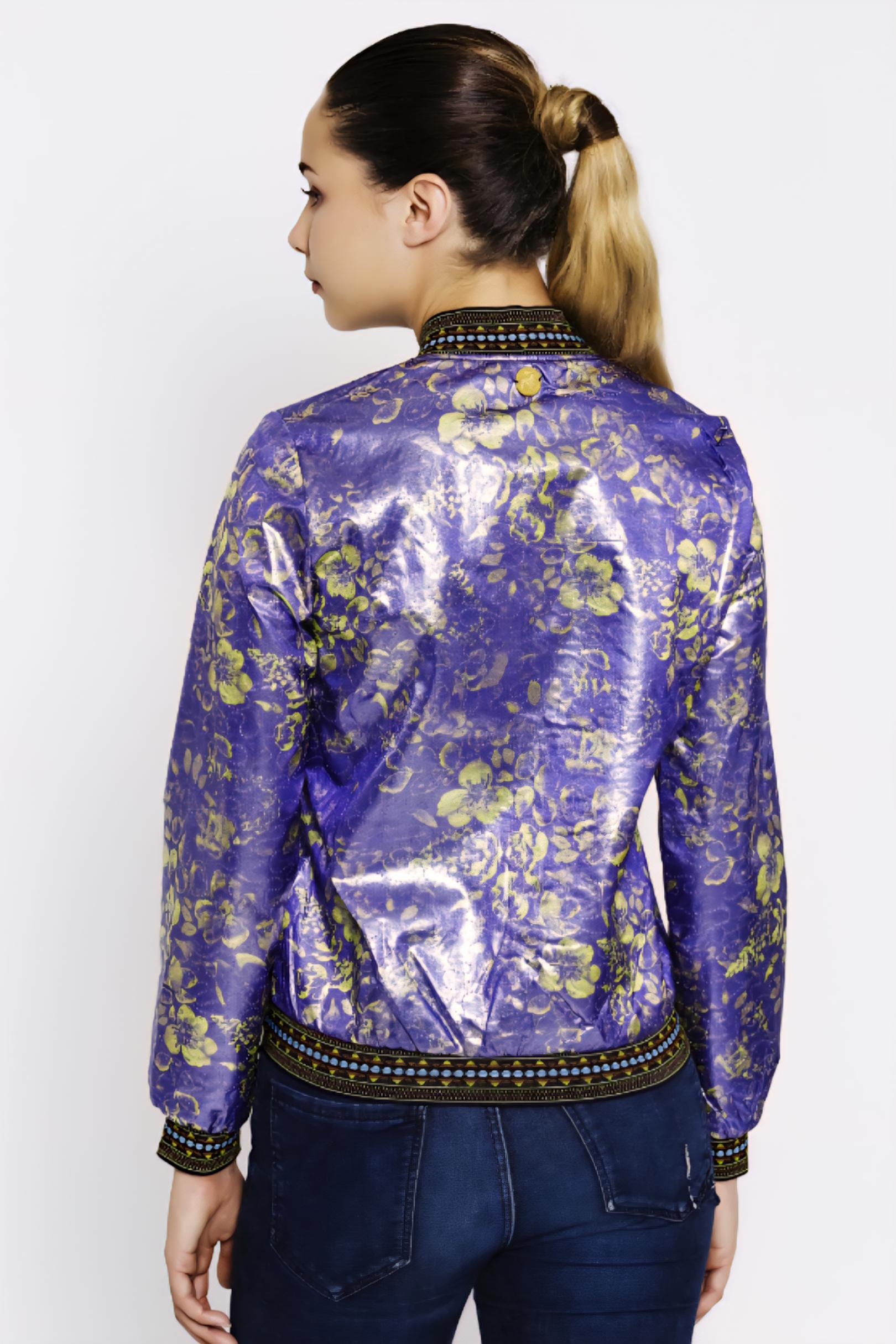 Chaqueta tipo bomber con bolsillos laterales y cremallera delantera.