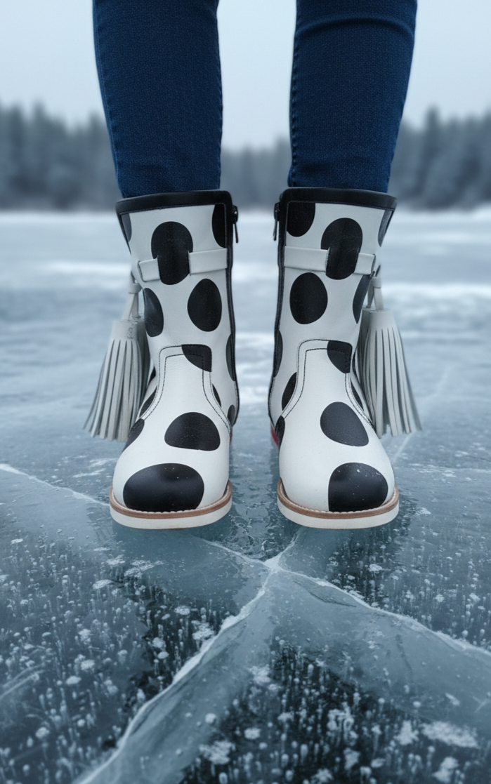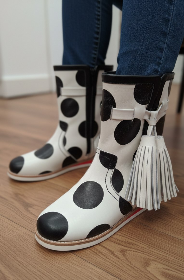 Bota plana bicolor en piel.