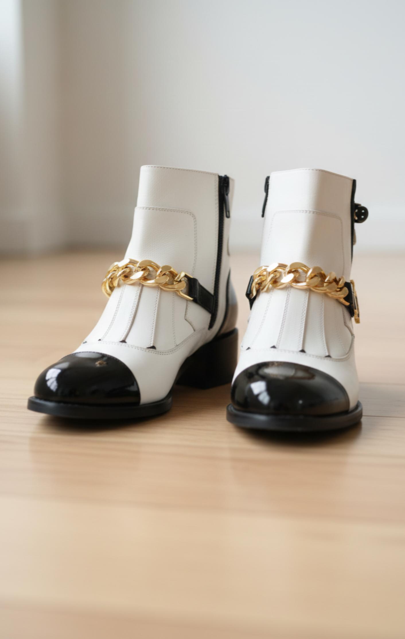 Botín de piel combinado en color blanco.