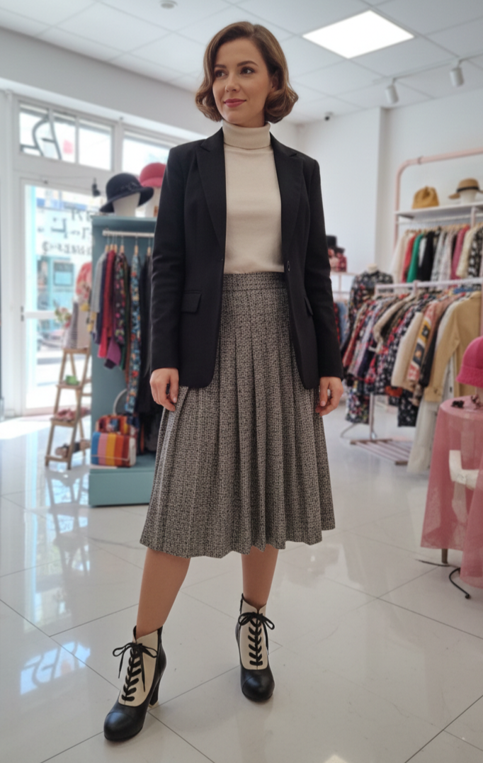 Botín de piel bicolor.