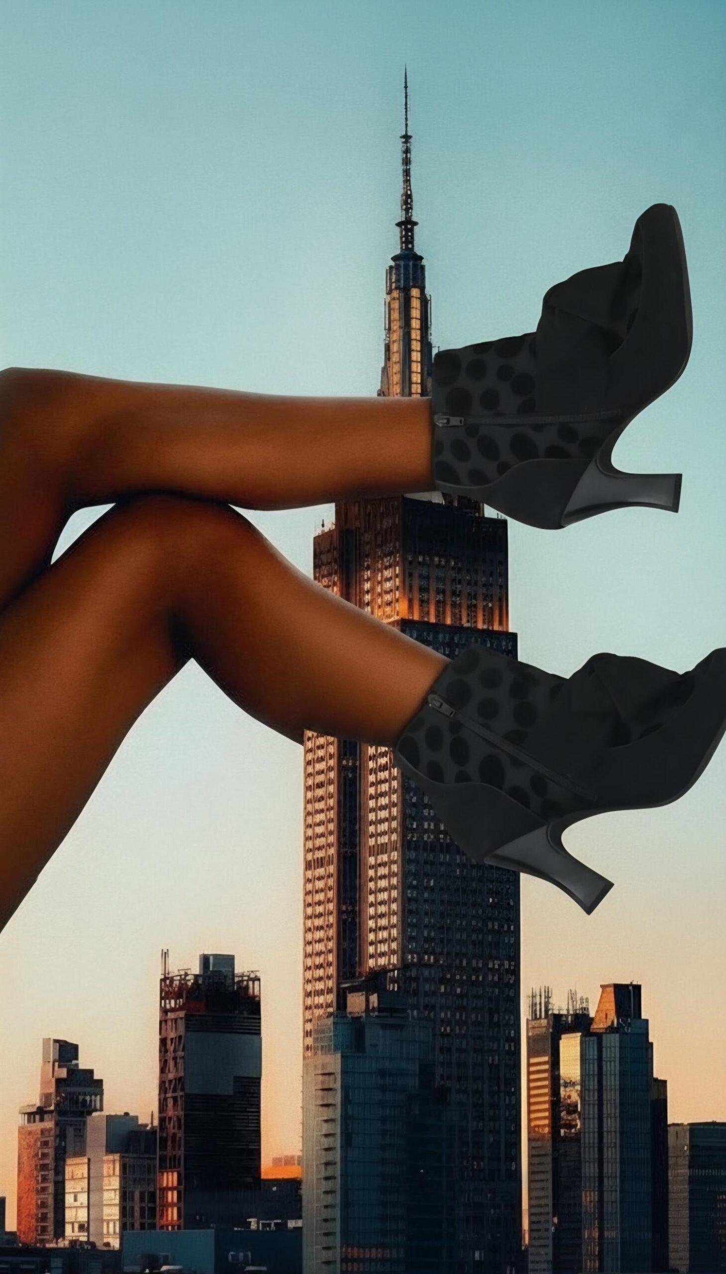 Botín de antelina negra y entelado con lunares de terciopelo.