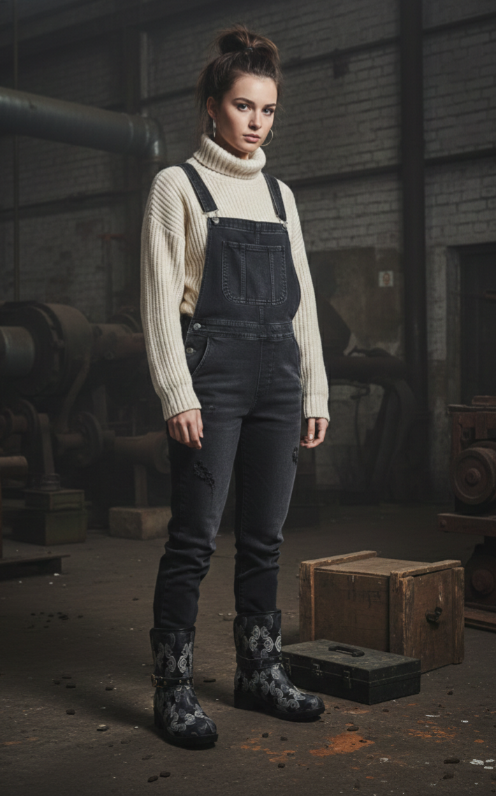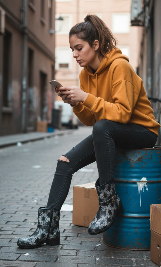 Bota plana de piel estampada en blanco y negro.