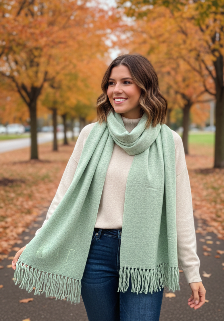 Bufanda de punto con fleco del mismo tejido.