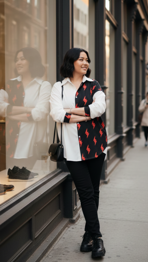 Camisa larga overside combinada de manga larga.