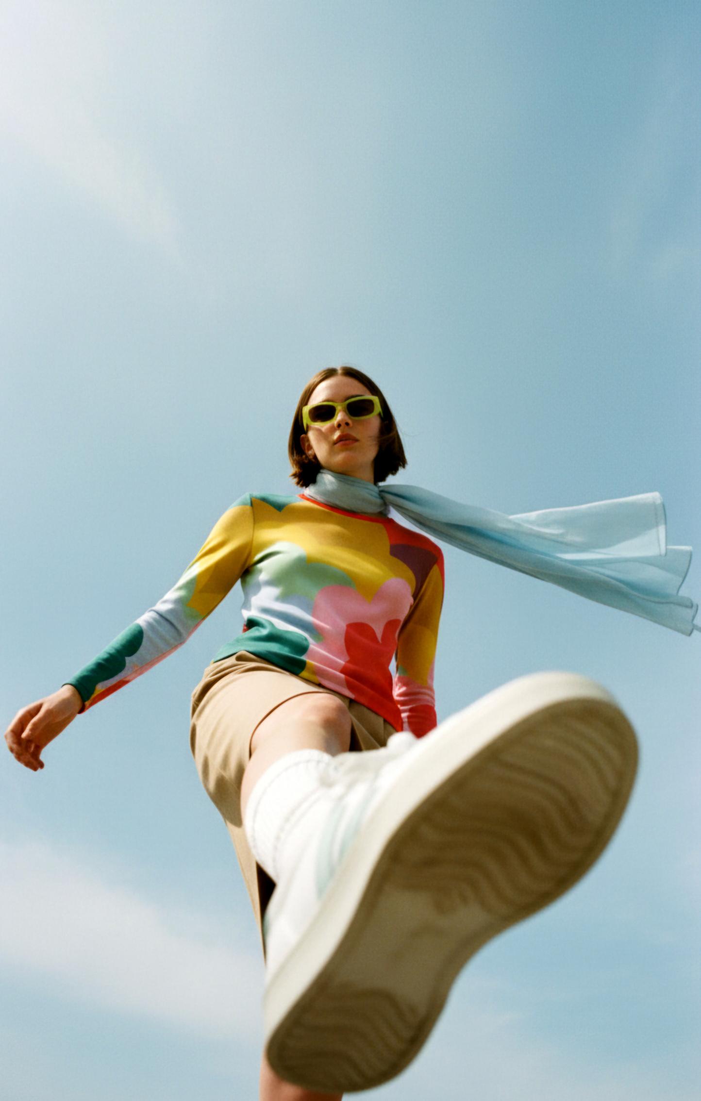 Camiseta-jersey de punto fino multicolor.