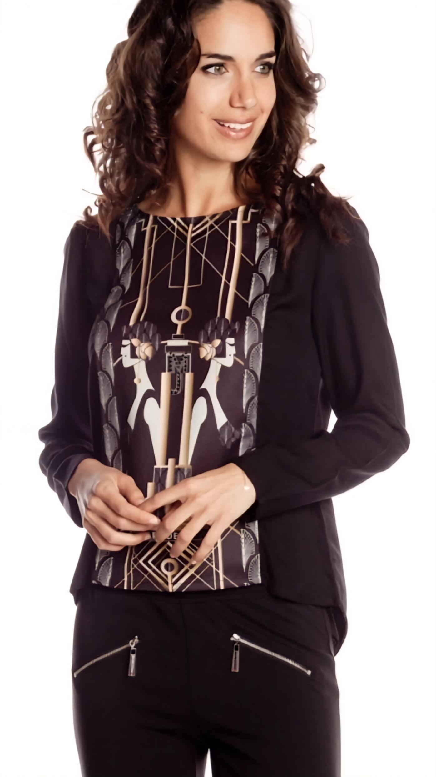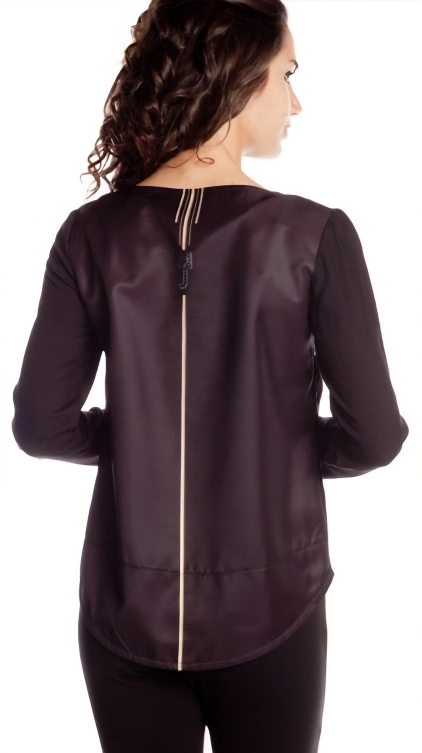 Camiseta negra combinada en tejido de algodón licra y tejido satinado.