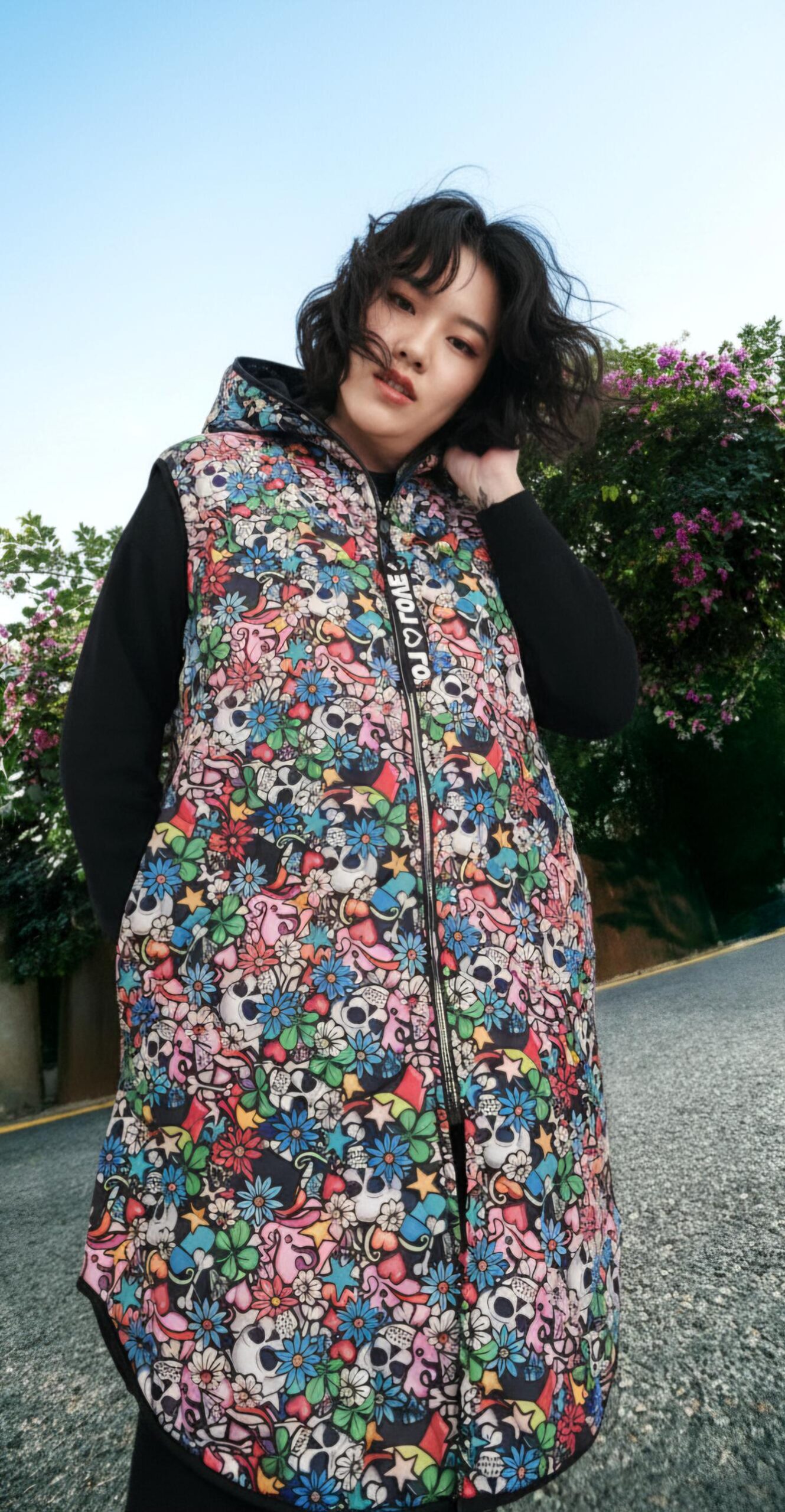 Estampación de catrinas multicolor.