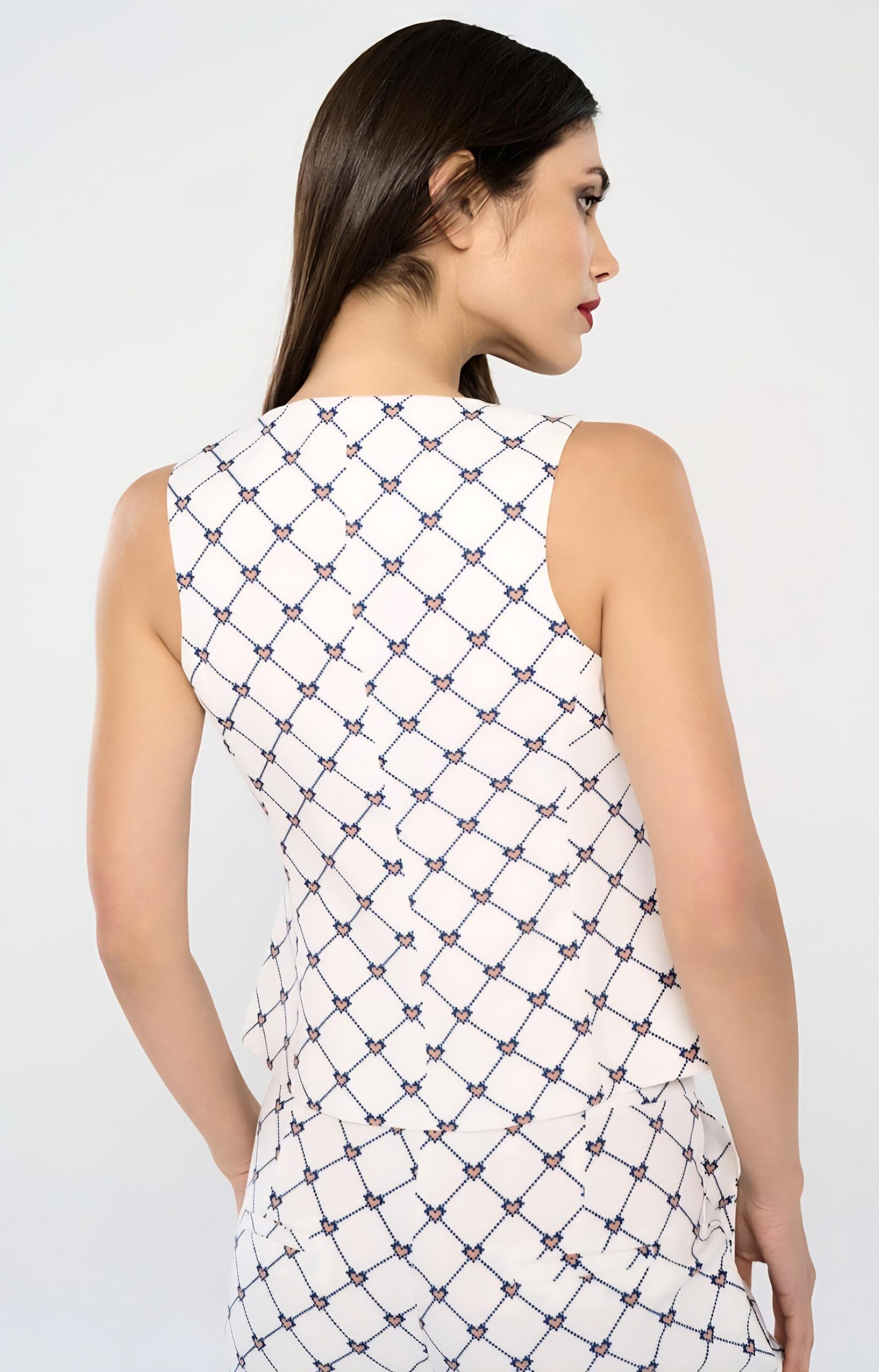 Estampación de cuadricula a puntitos y corazones color maquillaje sobre fondo blanco.