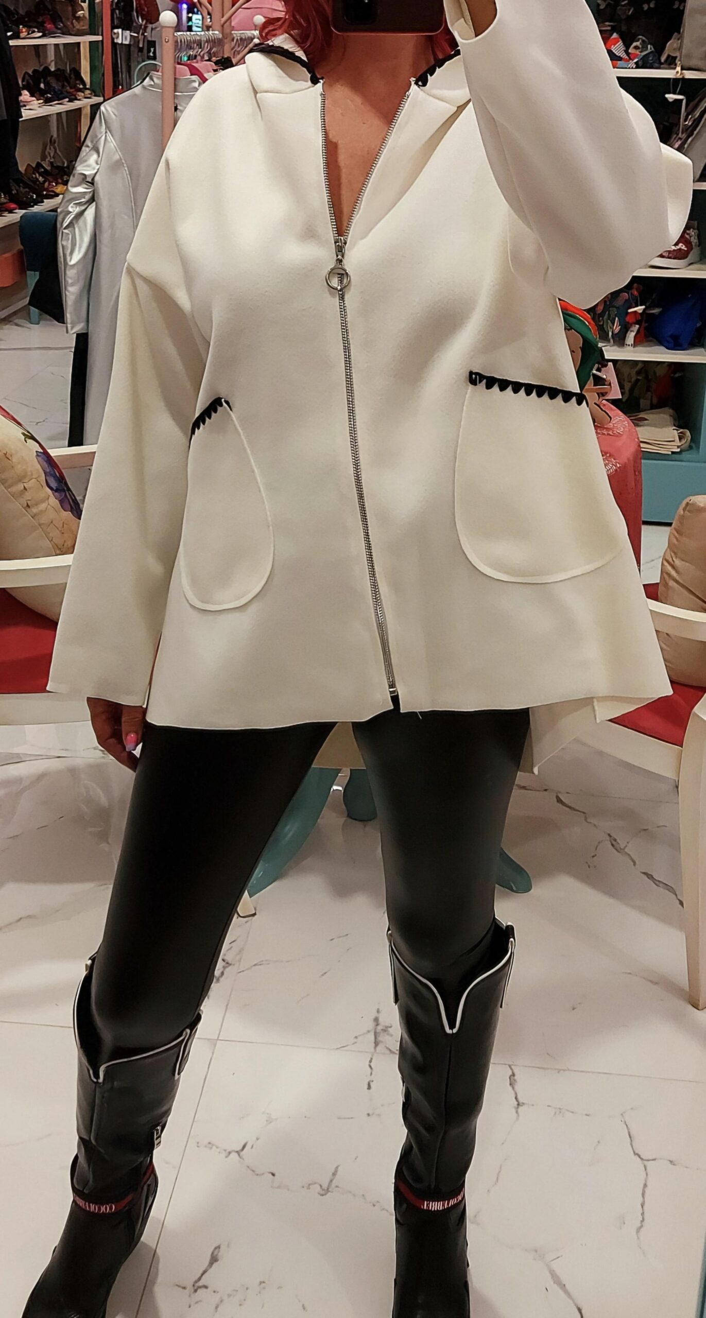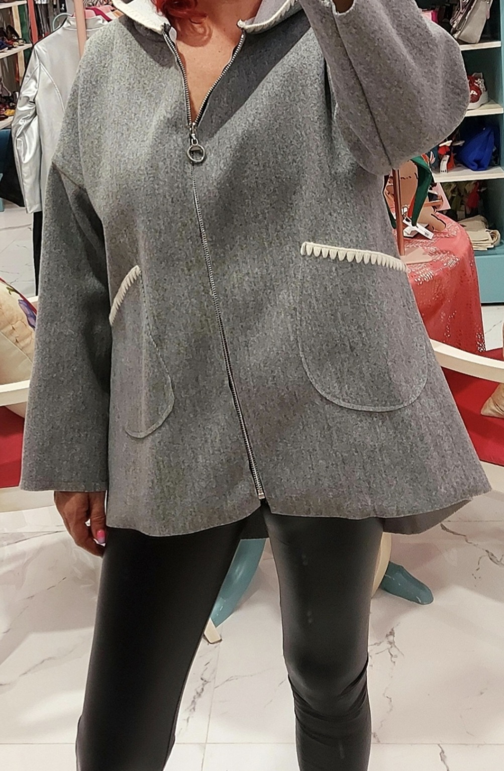 Chaqueta de paño fino con gorro.