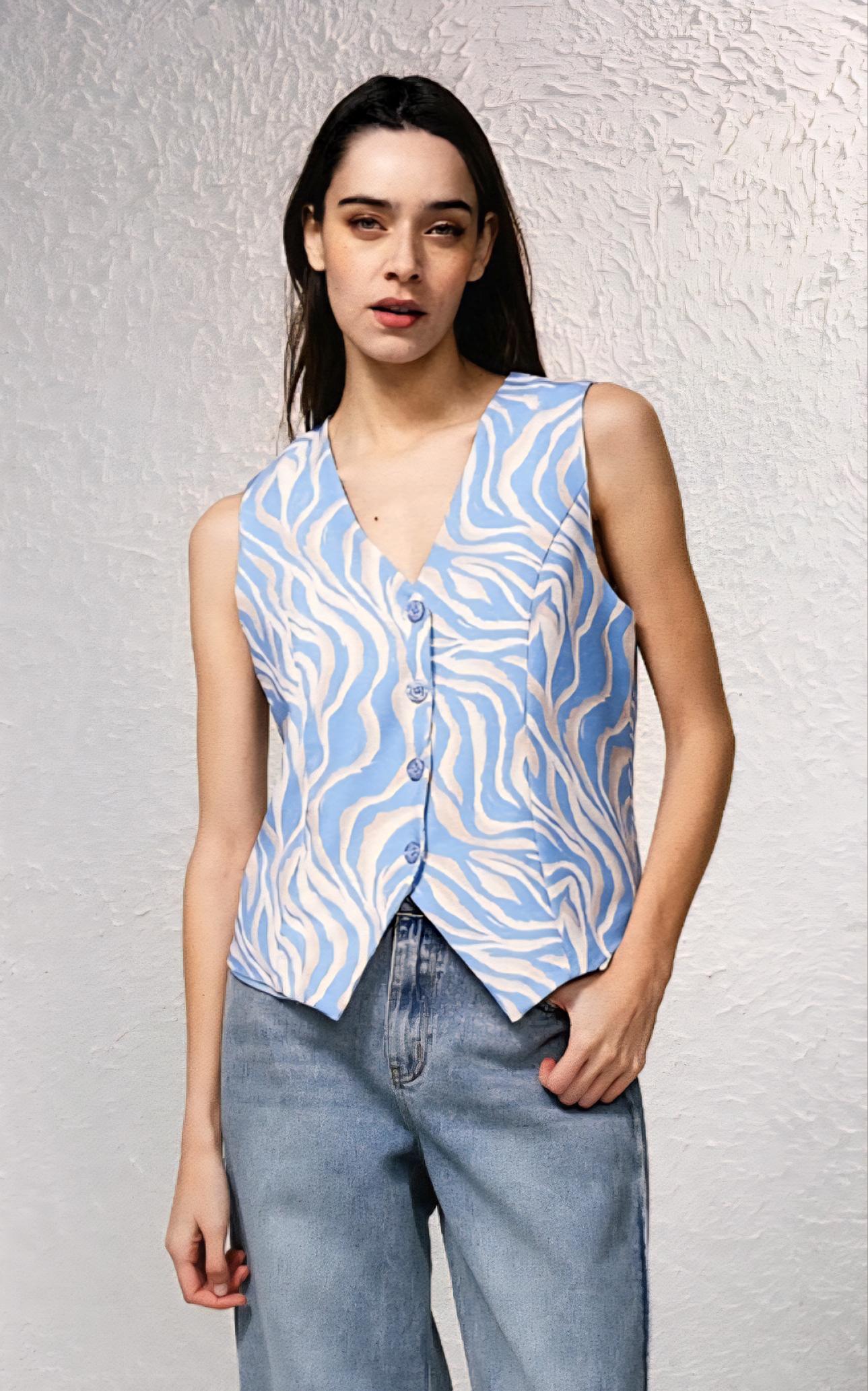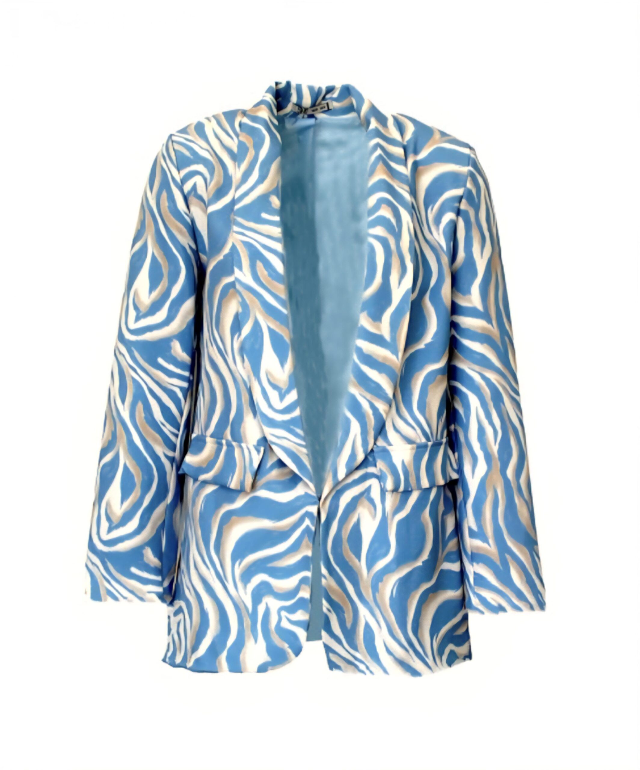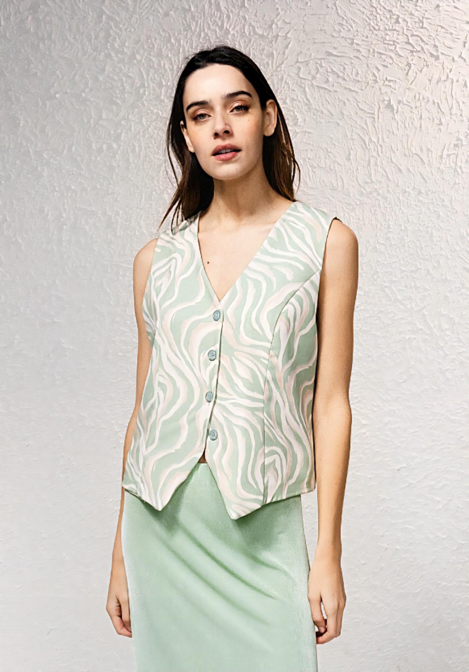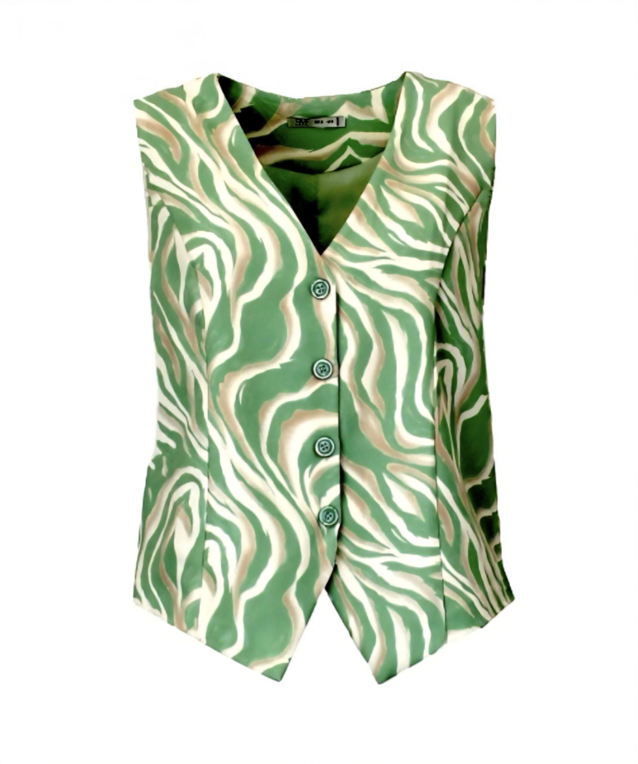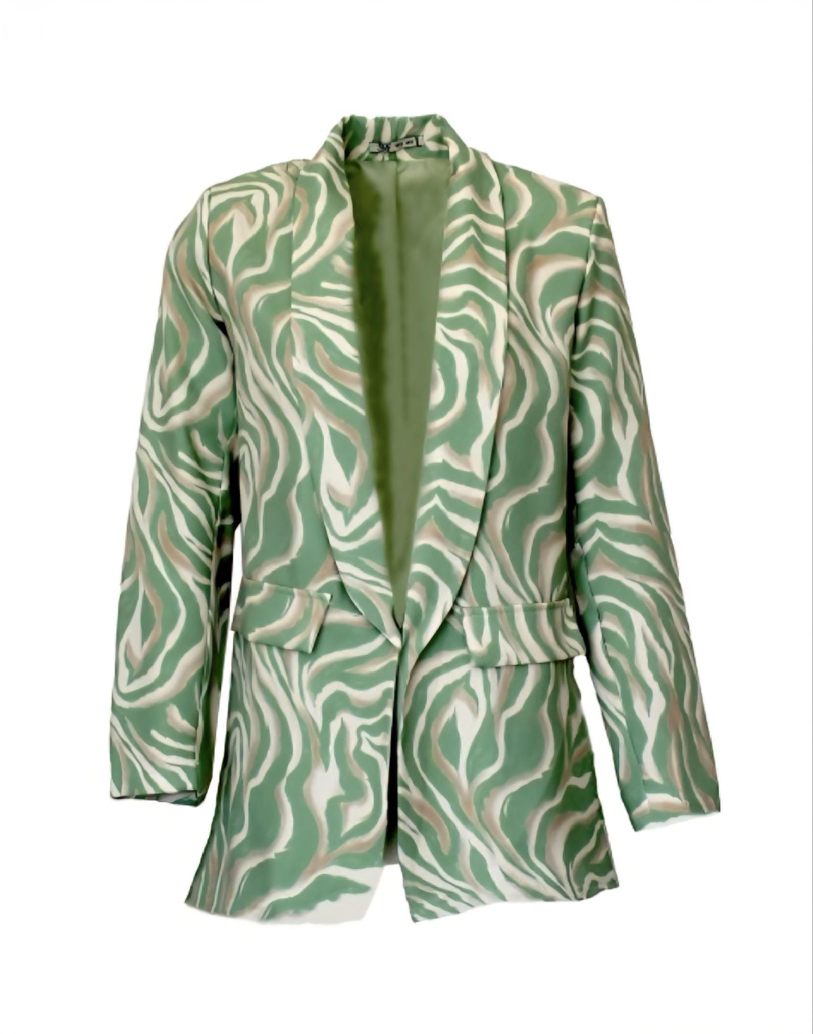 Estampación cebreada en tonalidades blanco y beige sobre fondo verde o azul.