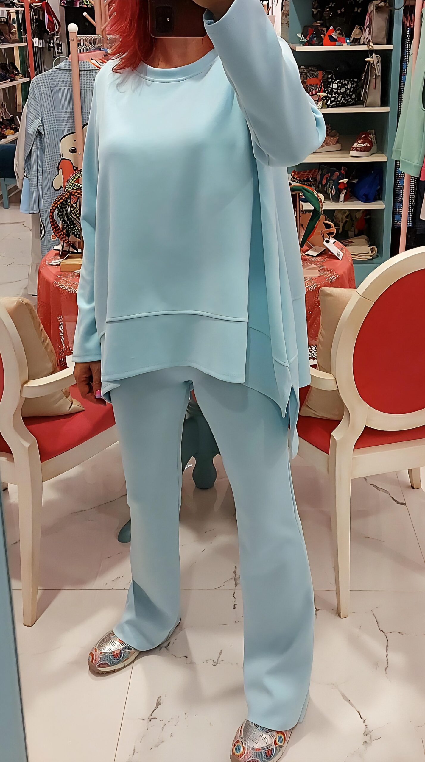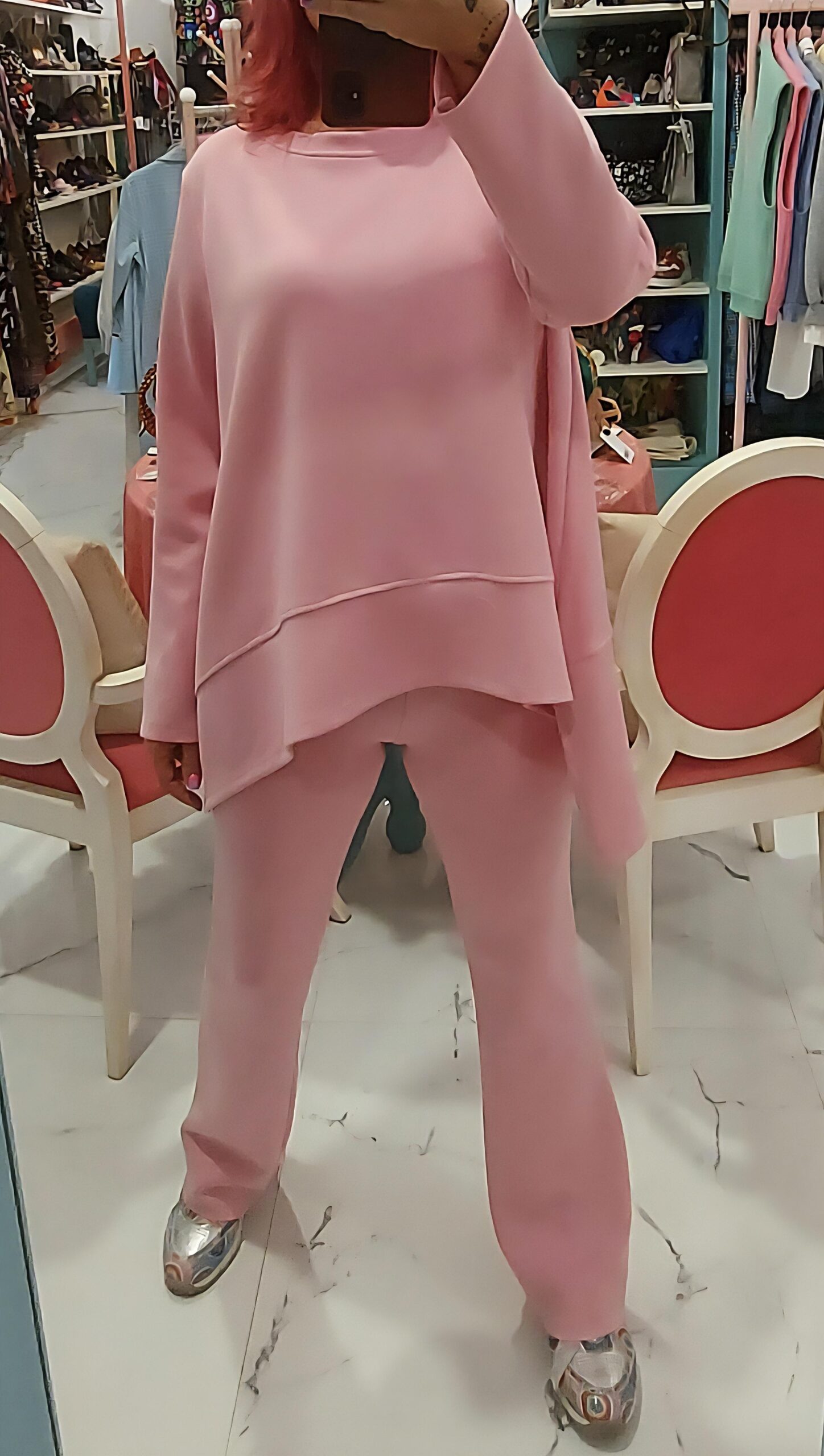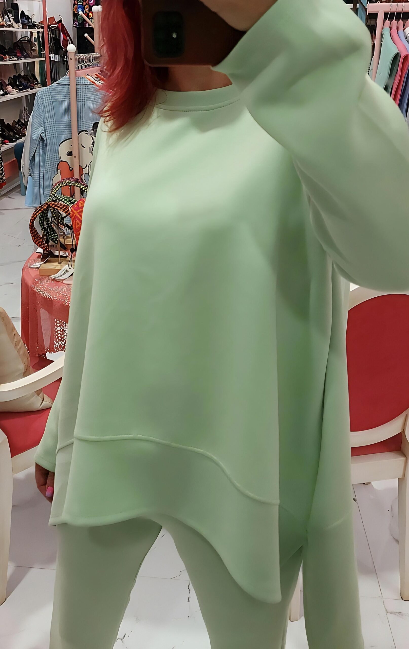 Sudadera amplia y asimétrica de cuello redondo y manga larga.