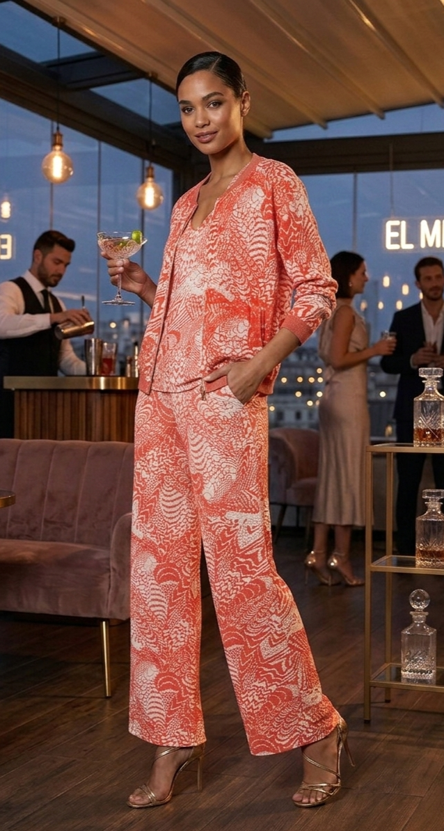 Conjunto en punto de hilo fino con ligero toque de brillo.