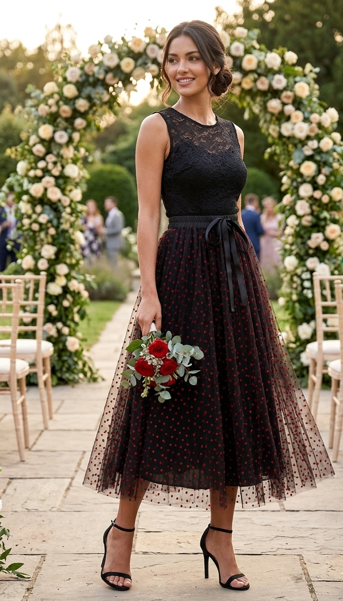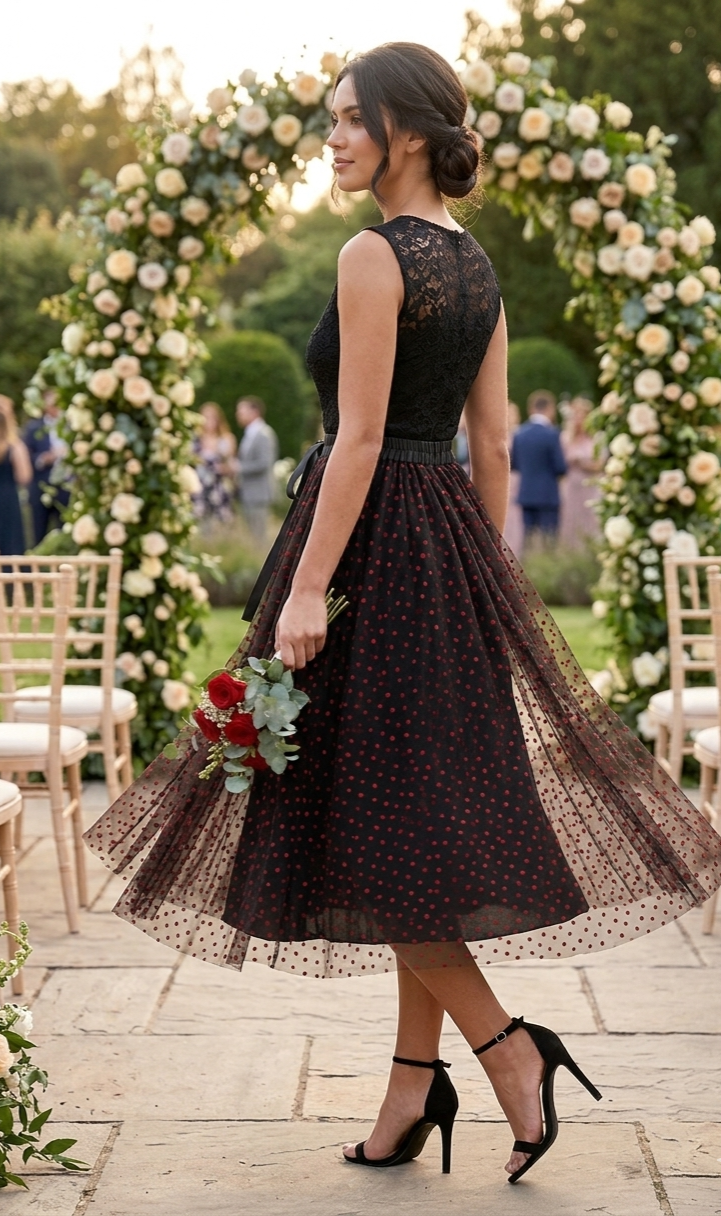 Falda larga en tul negro.