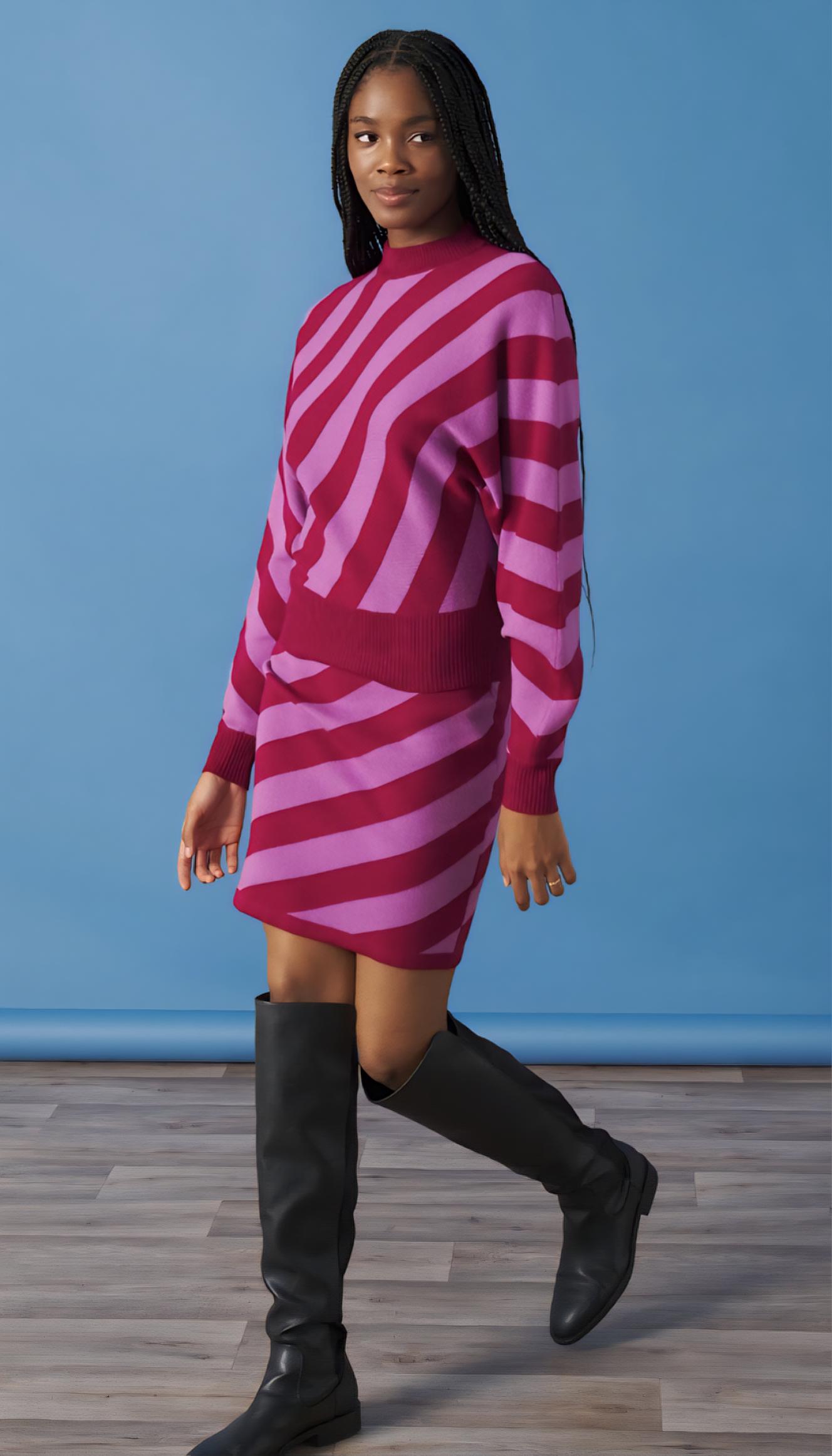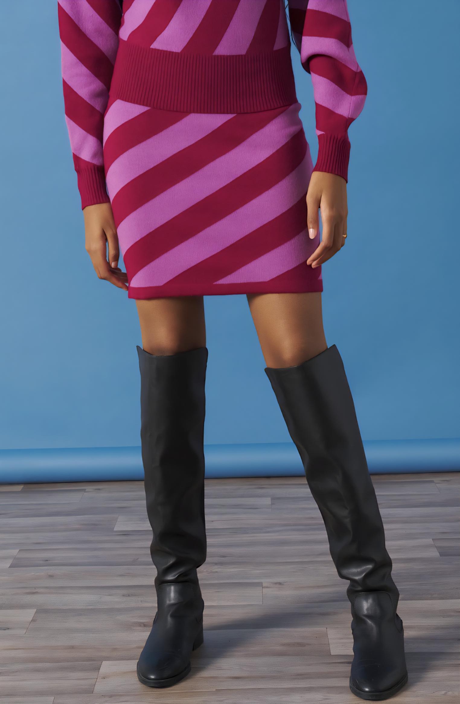 Falda de punto entubada a rayas.