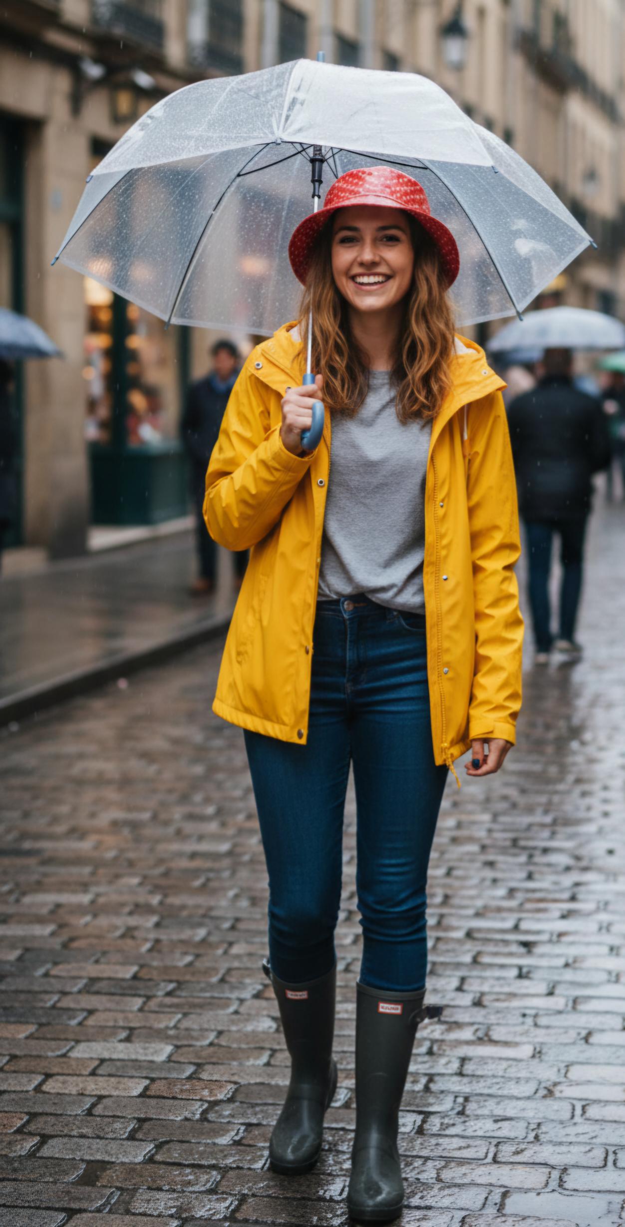 Gorro lluvia de topitos.
