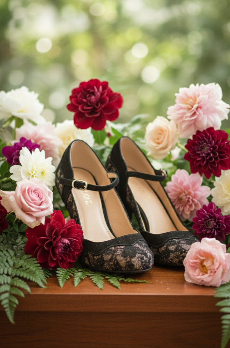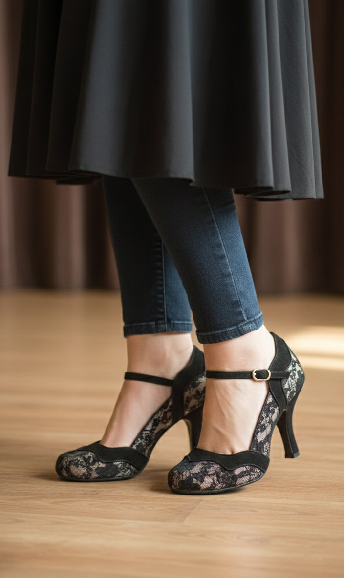 Zapato de encaje negro.