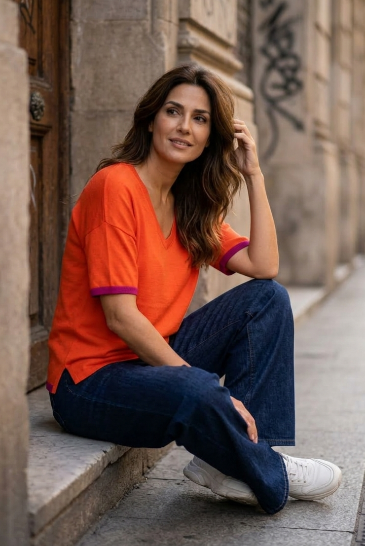 Jersey en punto de hilo color naranja.