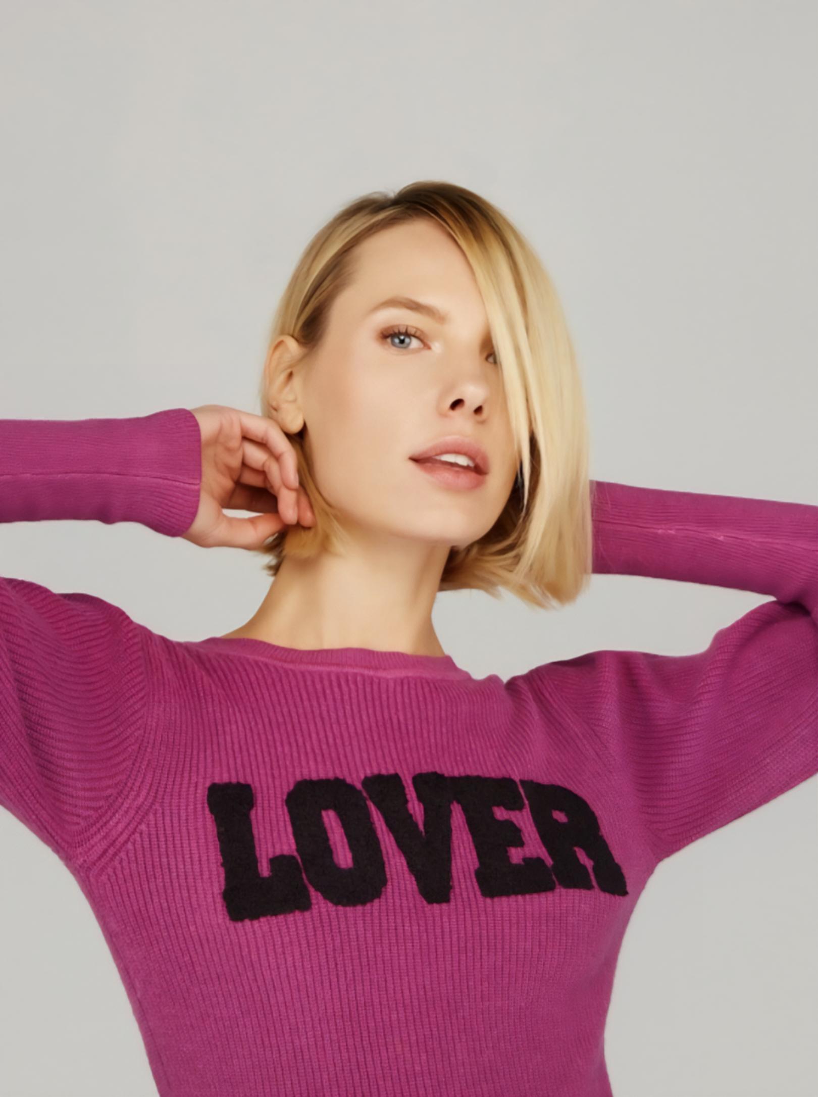 Jersey de punto, cuello redondo y manga larga abullonada.