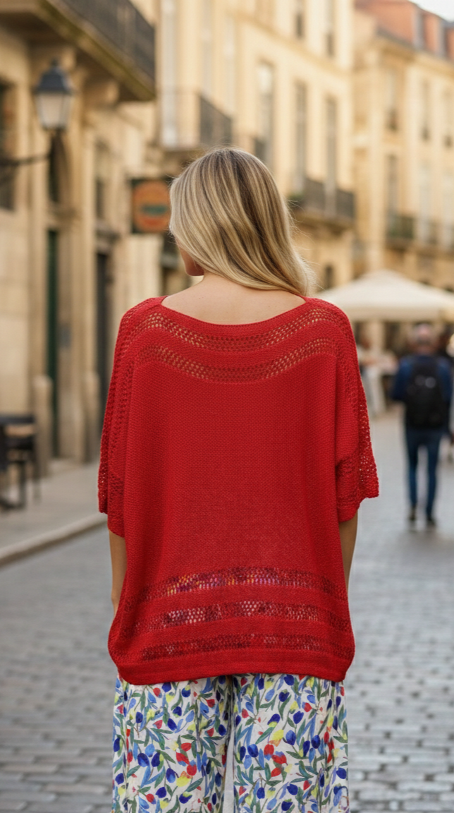 Jersey de hilo calado en color rojo.
