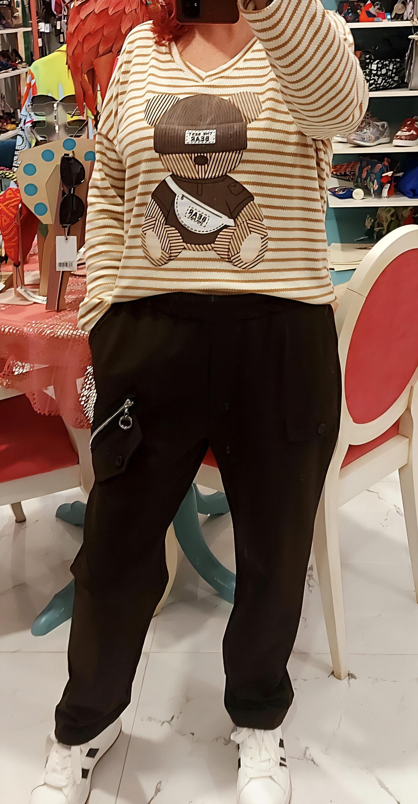 Detalle de parche oso entelado en delantera.