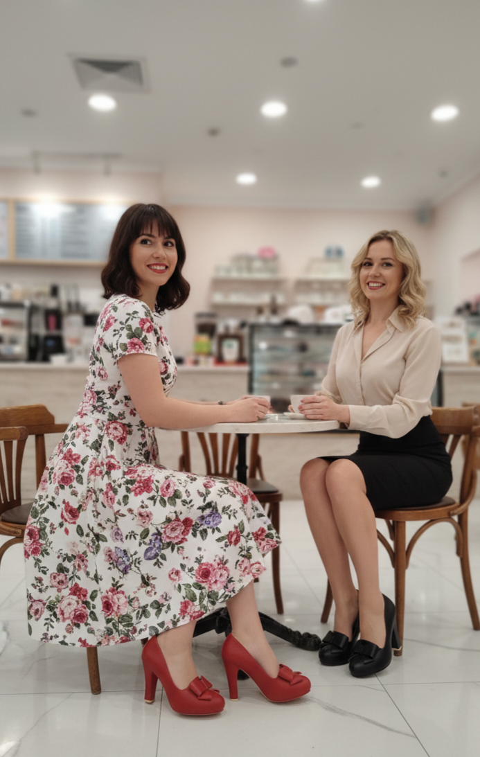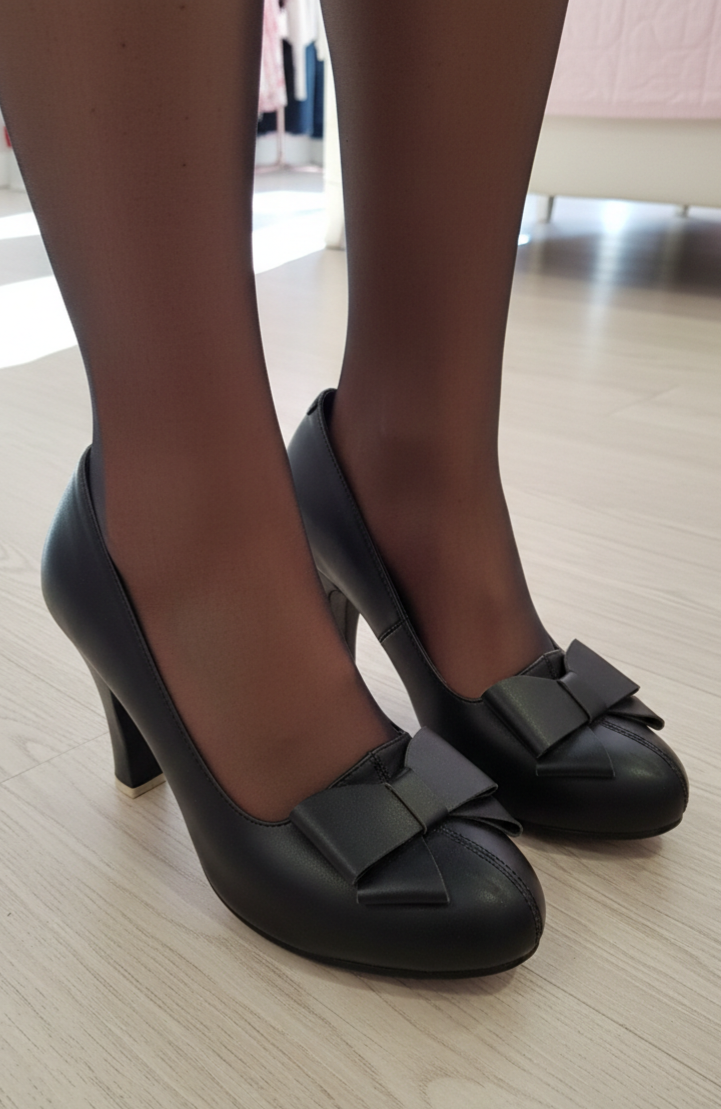 Zapato de tacón en piel con moña decorativa.