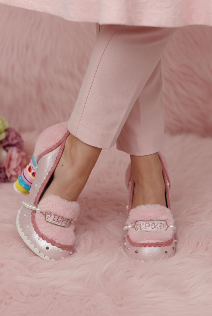 Puntera y talón en peluche rosa.