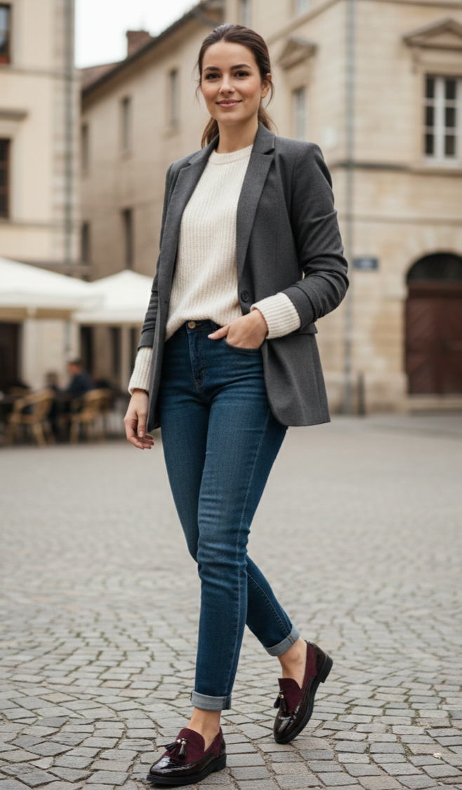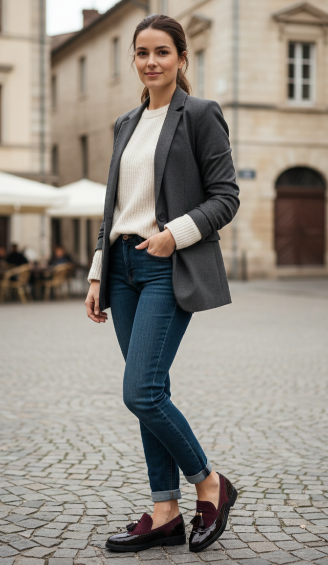 Mocasín plano estilo Oxford color burdeos.