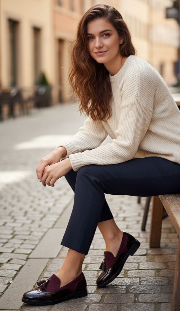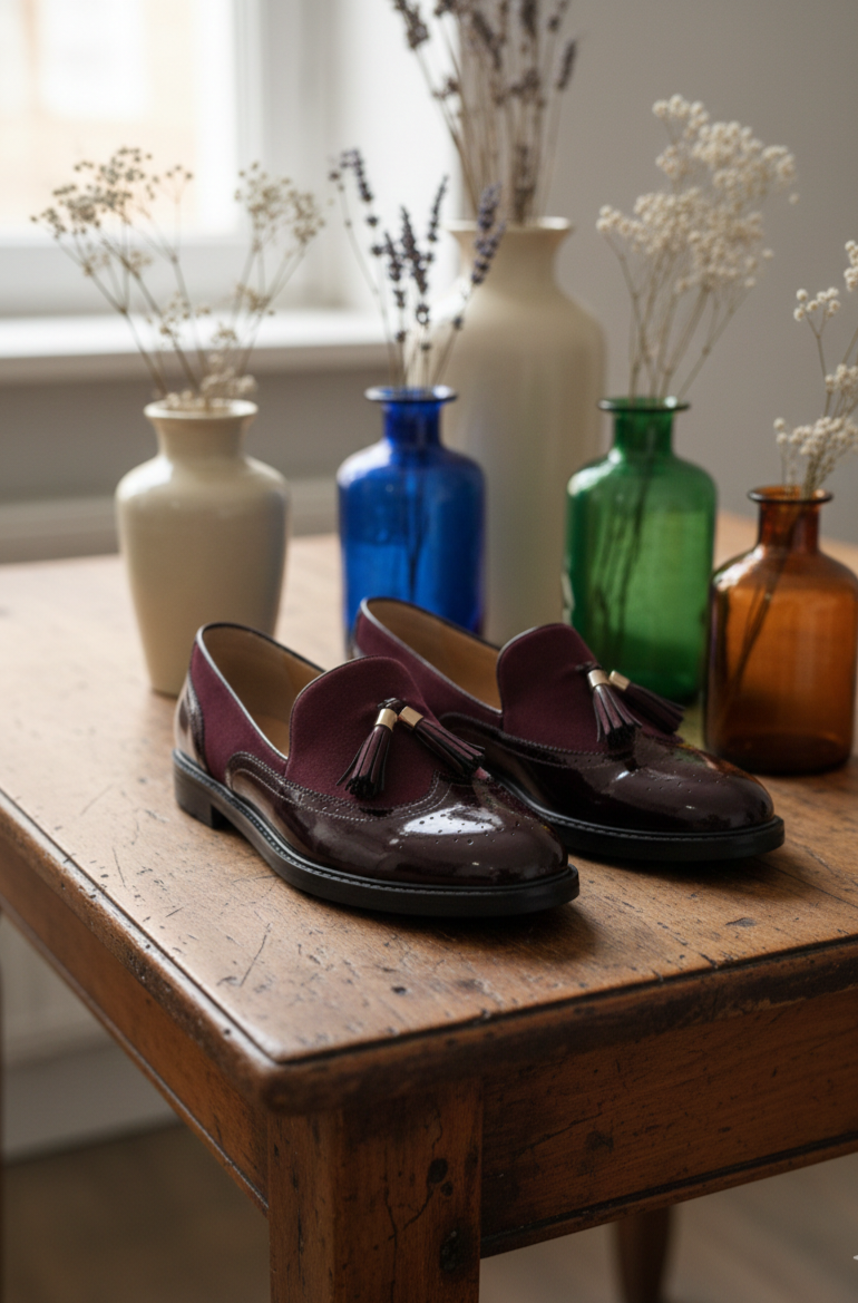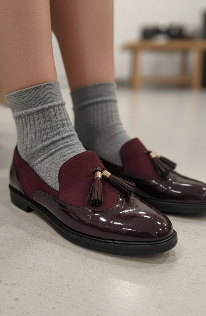 Mocasín burdeos combinado.