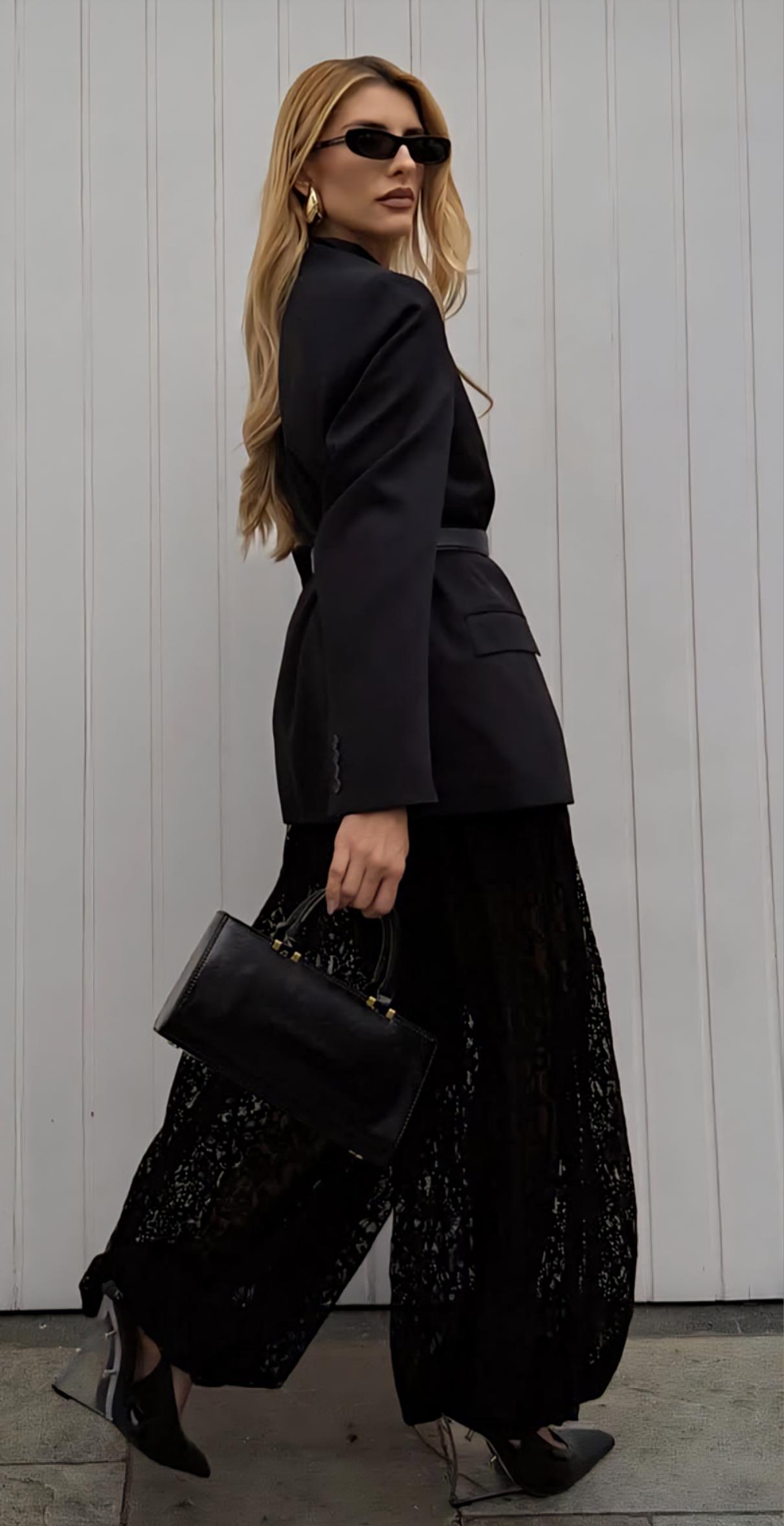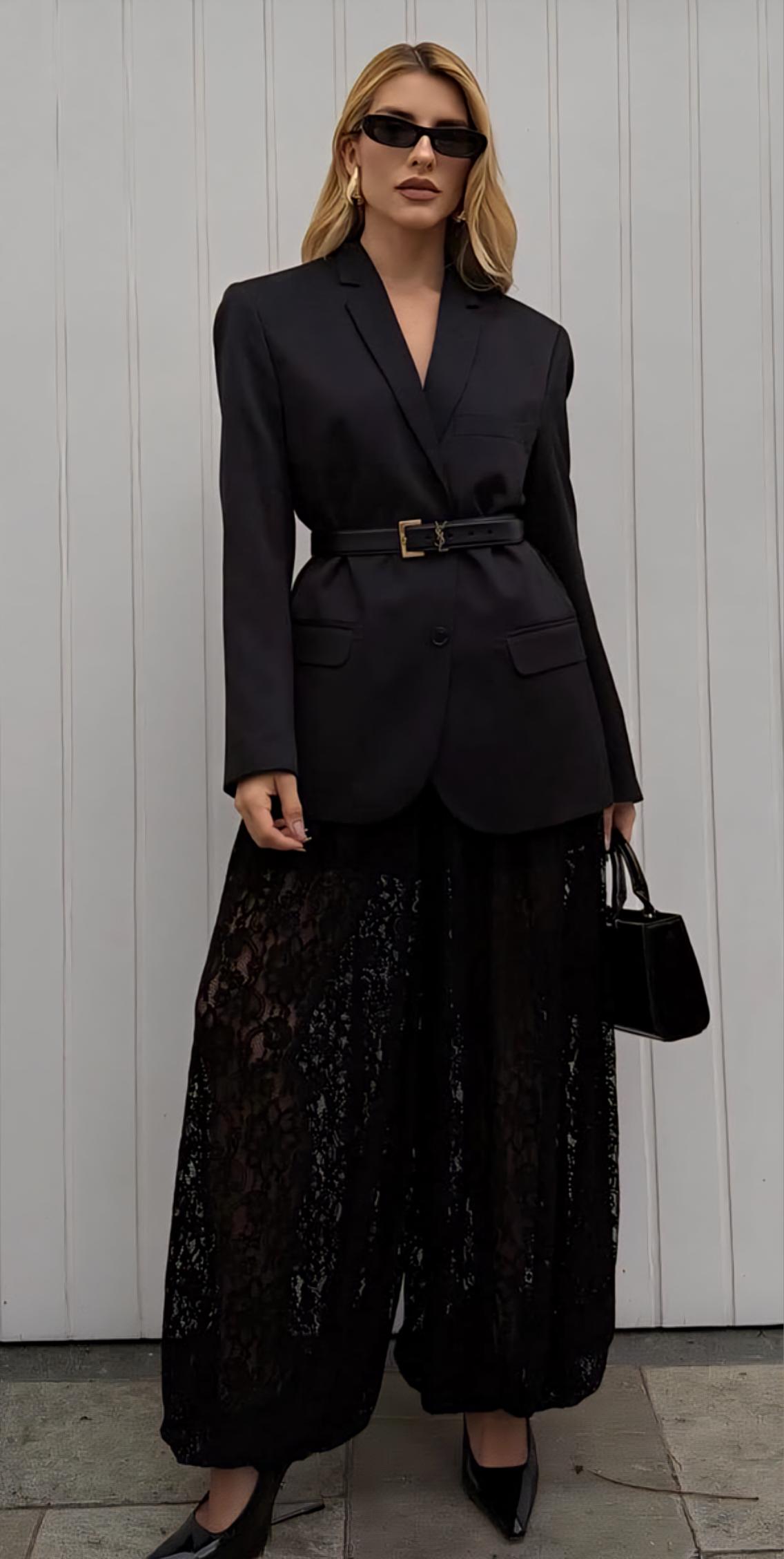 Pantalón largo de encaje y bombacho.